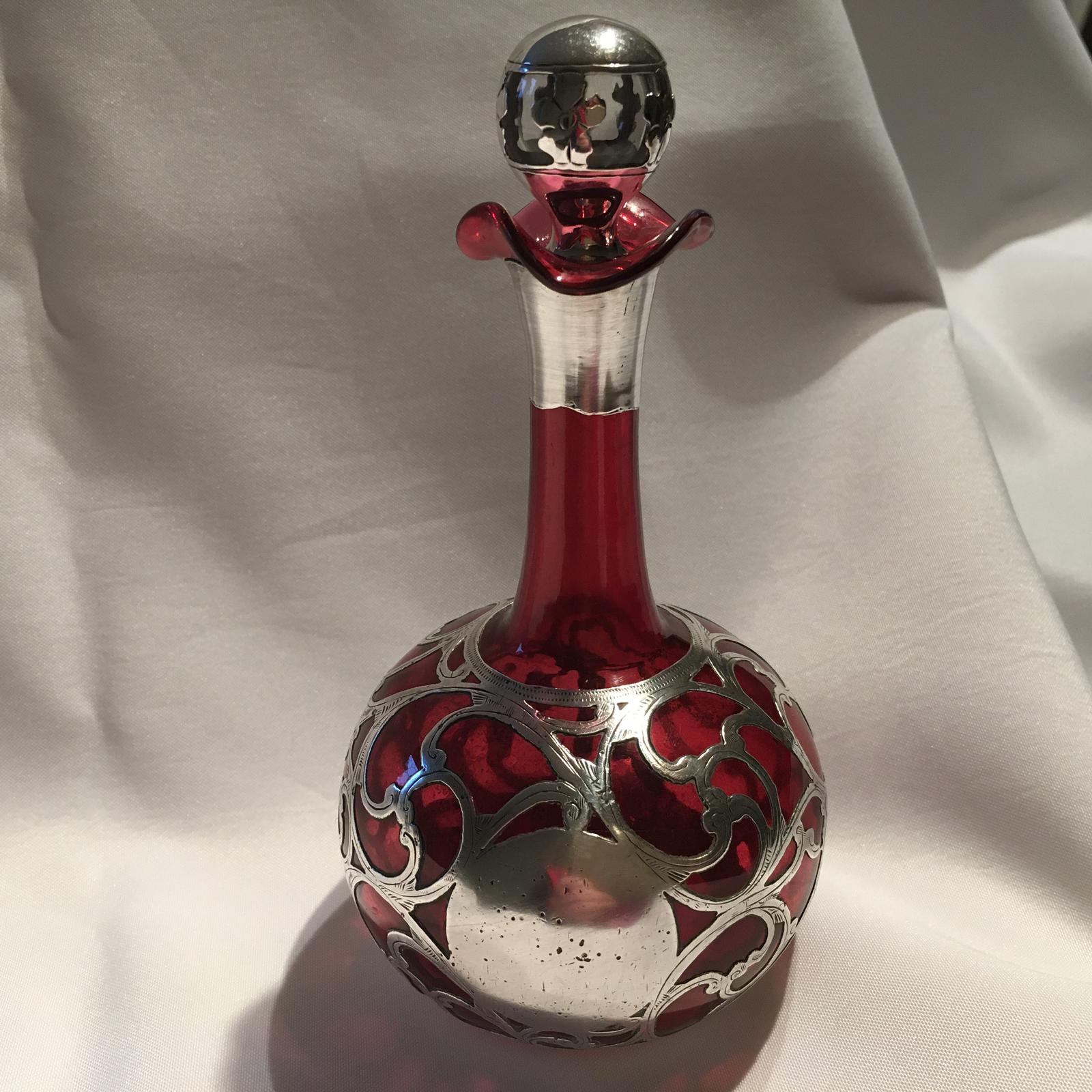 Beautiful Cranberry Glass & Silver Overlay Scent Bottle c.1900