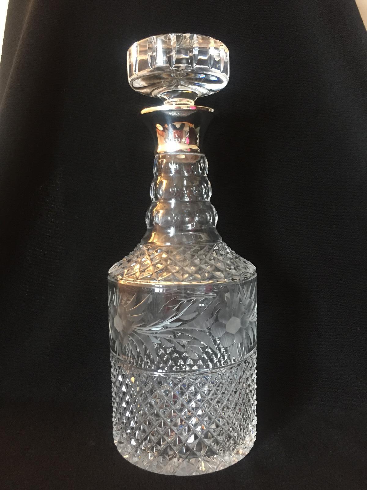 Beautiful Crystal Cut & Etched Detail Spirit Decanter Hallmarked London 1913