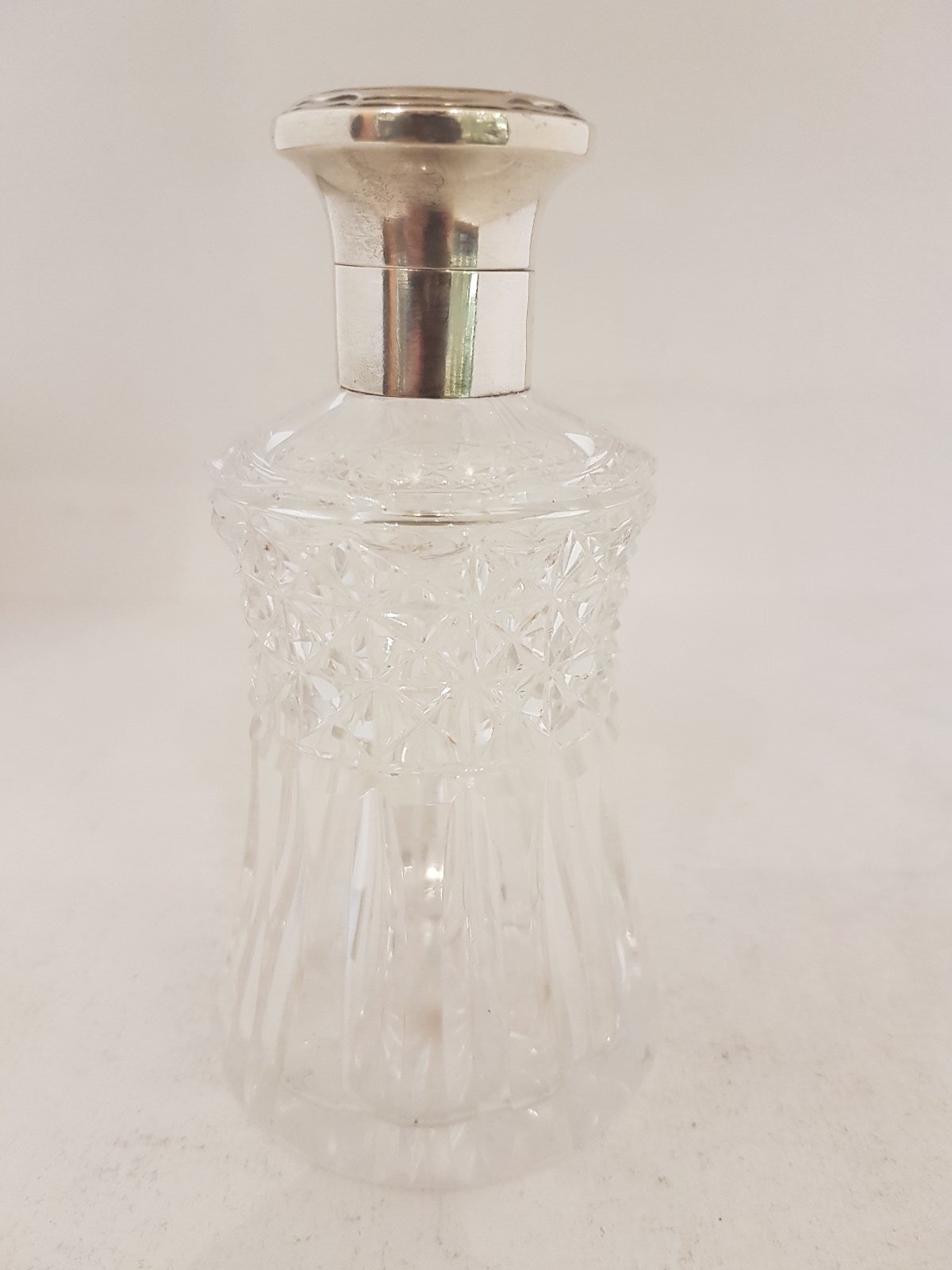 Beautiful Cut Glass Scent Bottle with Silver and Gold Enamel Top