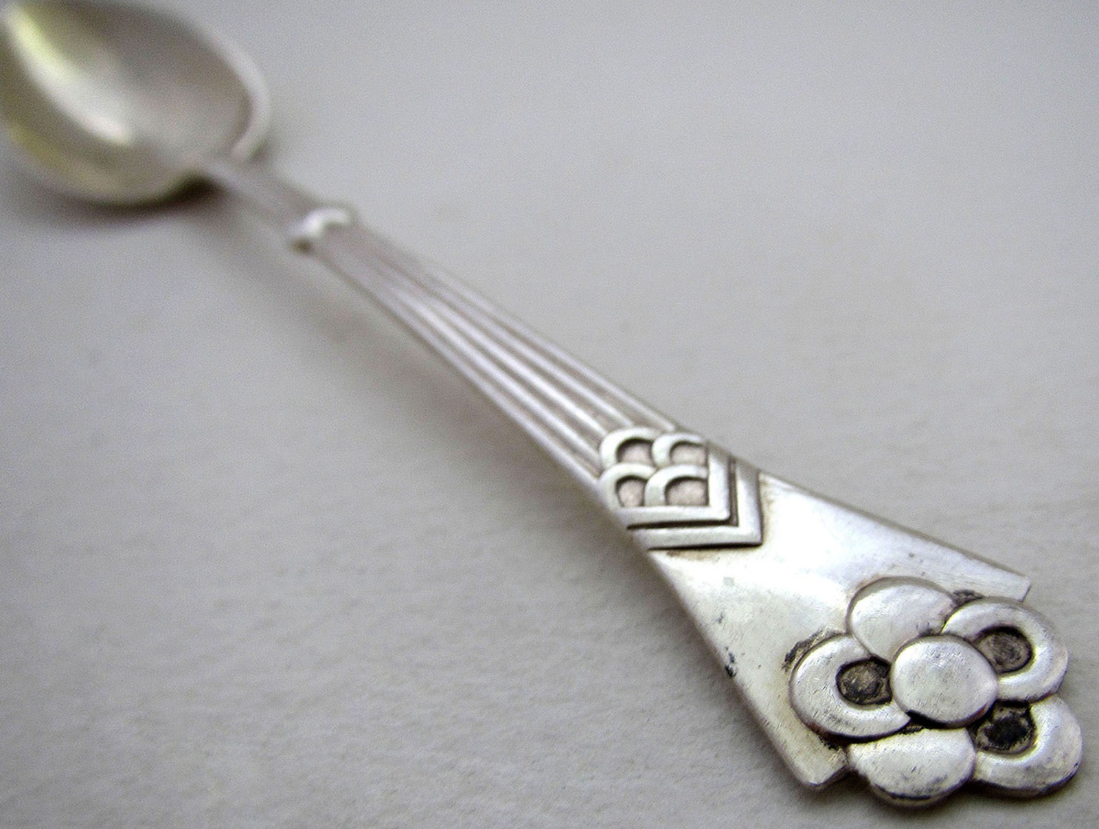Beautiful Danish 1912 Solid Silver Antique Tea / Coffee Spoon. Denmark Christian F.Heise. Monogram Jw