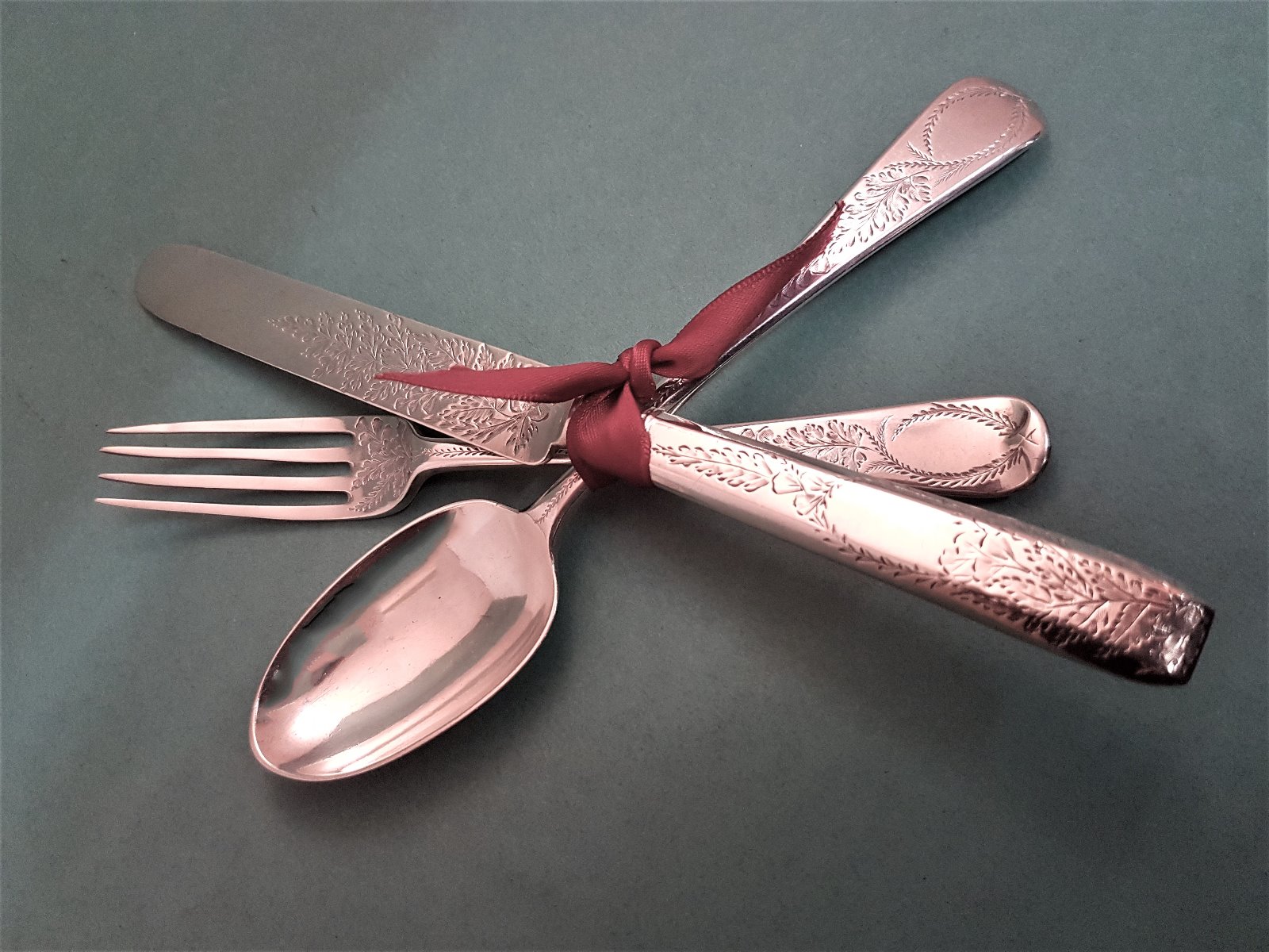 Beautiful Decorative Antique Victorian Silver Child's Cutlery Set