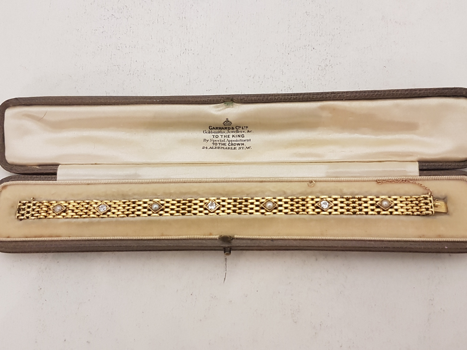 Beautiful Diamond & Pearl Studded 18ct Yellow Gold Bracelet