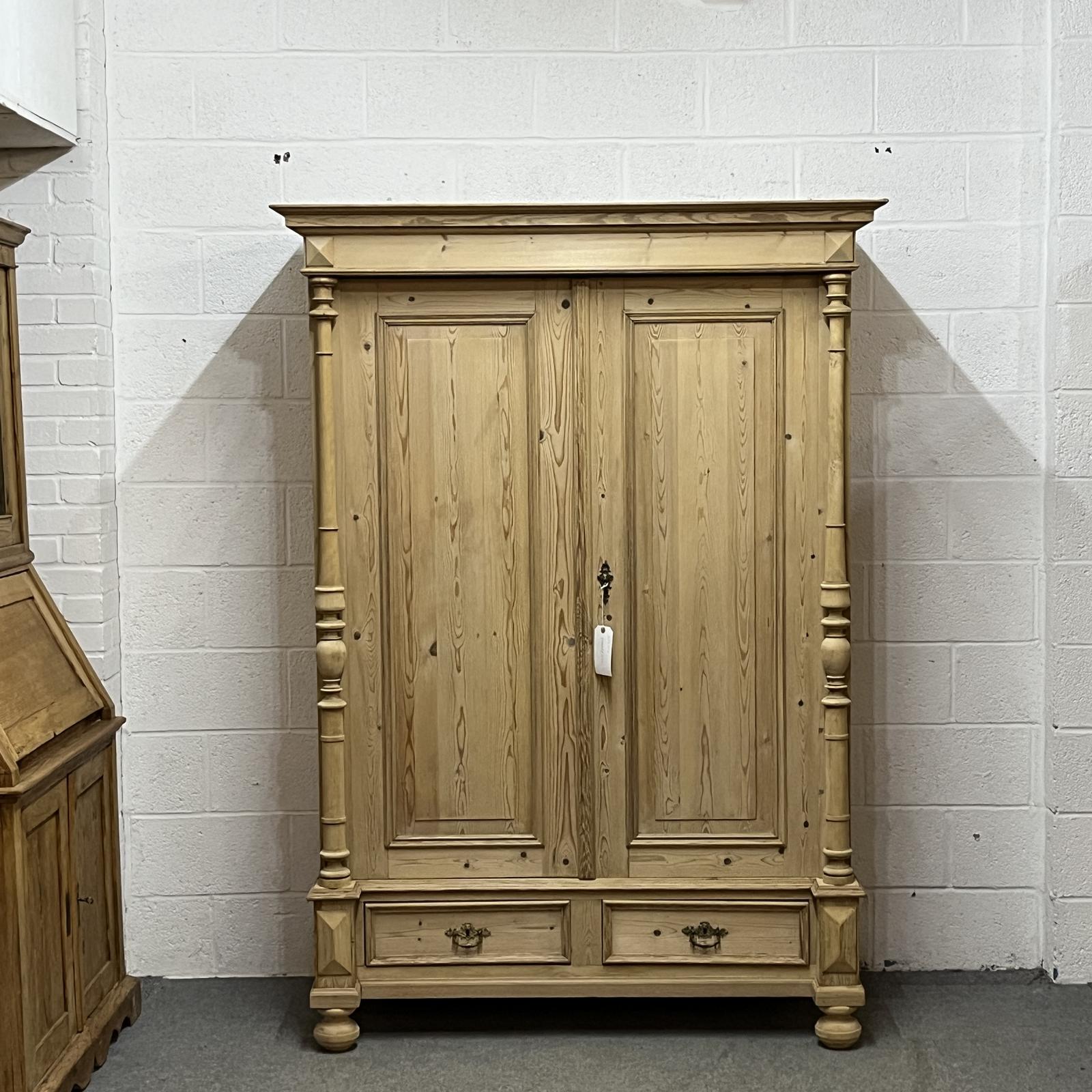 Beautiful Double Column Antique Pine Wardrobe with Bottom Drawers - Dismantles