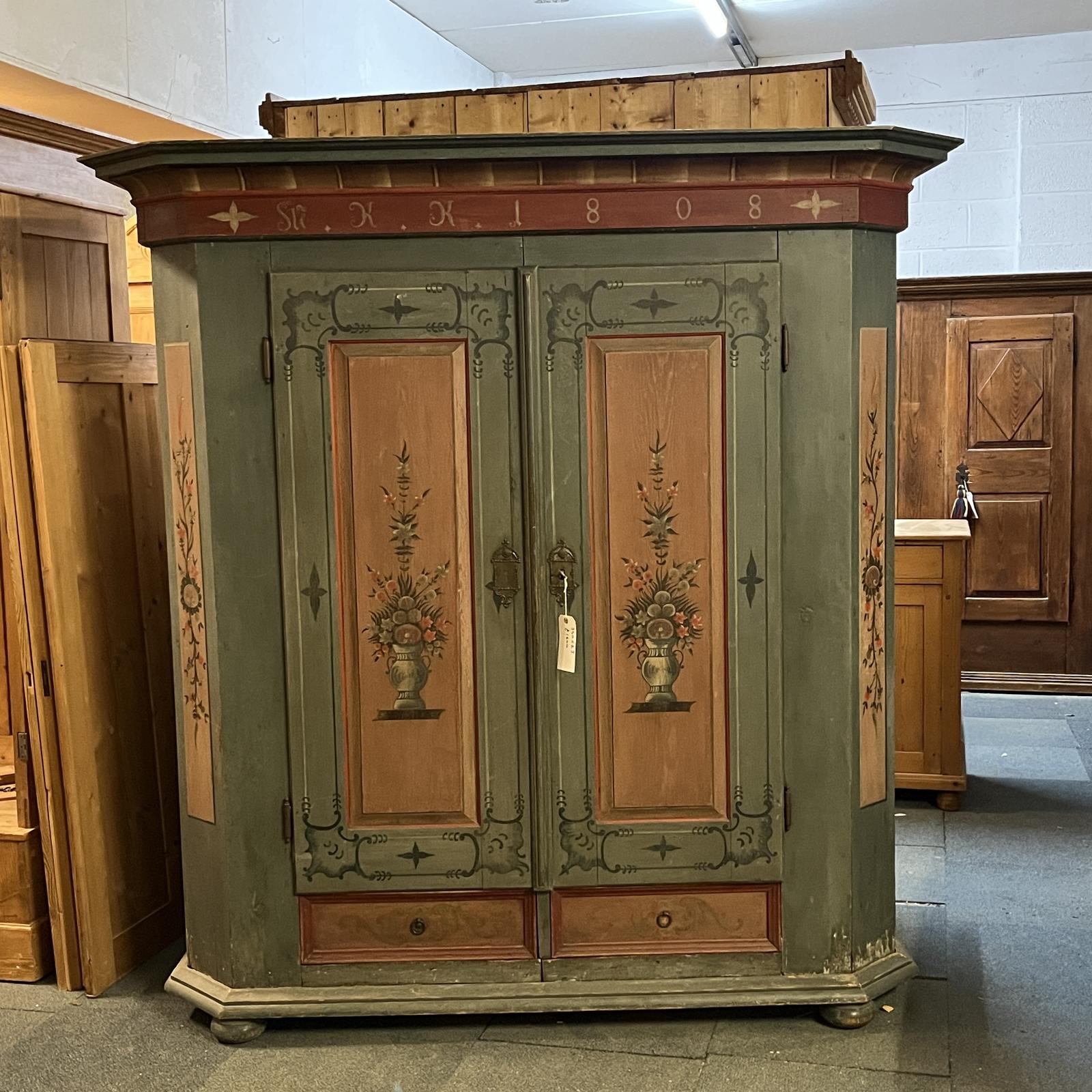 Beautiful Early 1800's Original Painted Pine Armoire