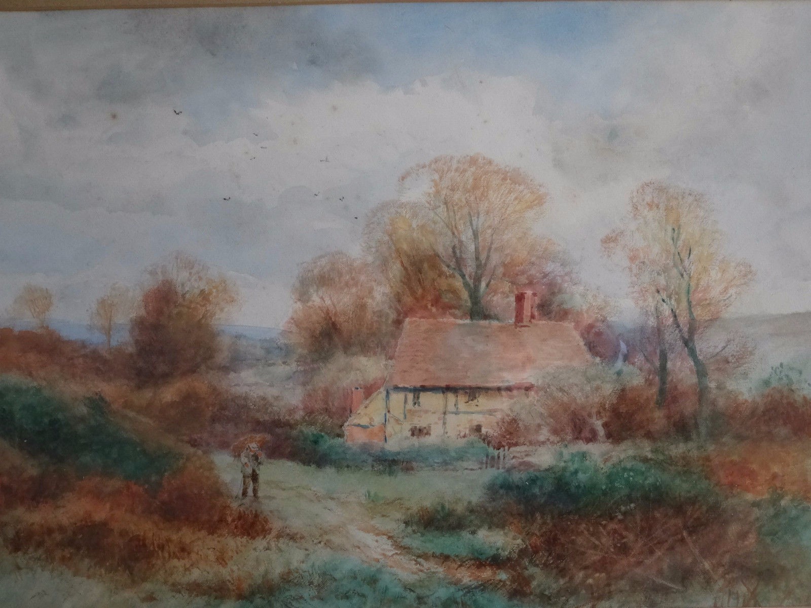 Beautiful Early 20th Century English Cottage Landscape Watercolour Painting c.1910