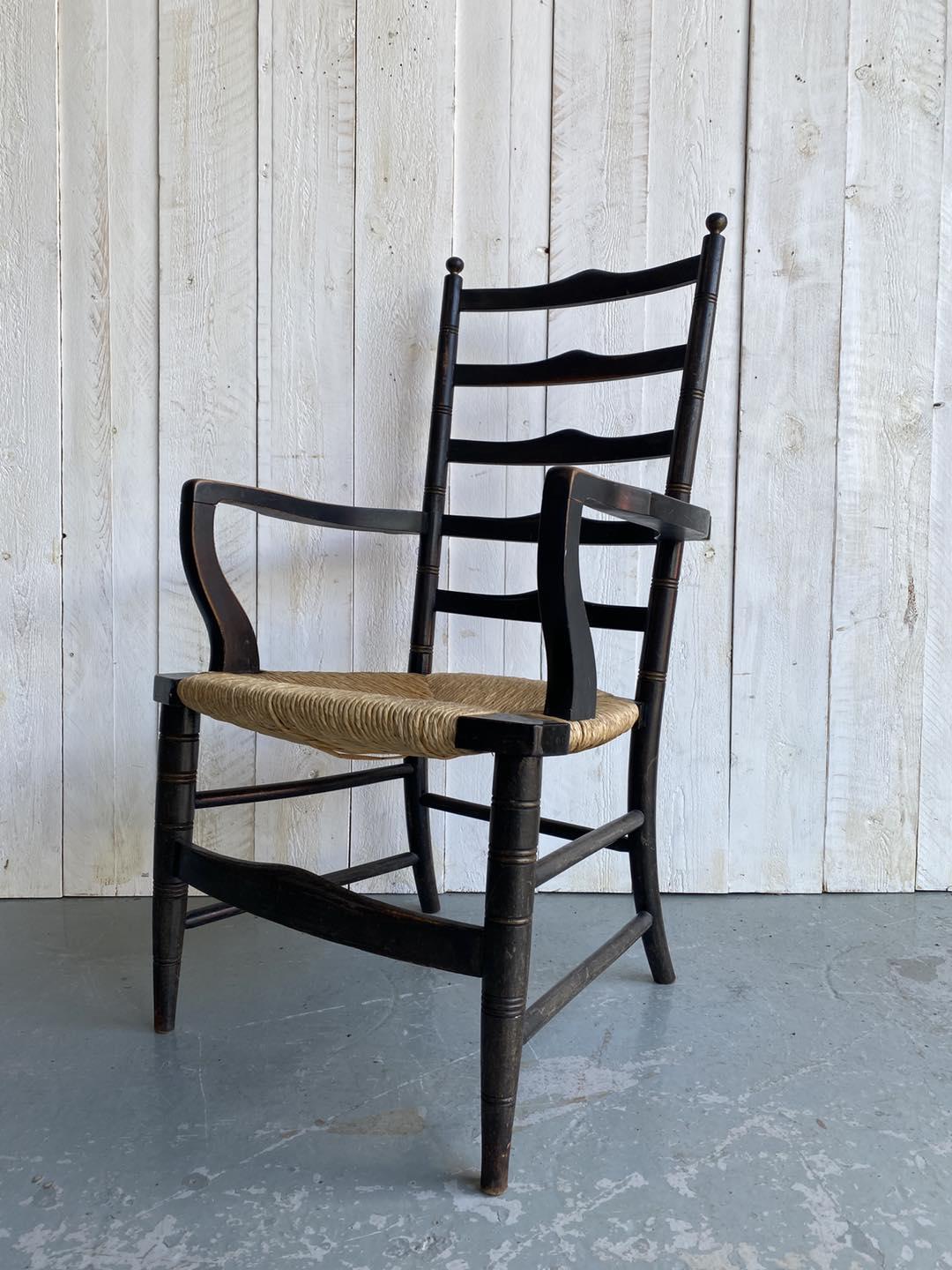 Beautiful Ebonised Rush Seat Ladder Back Chair c.1890