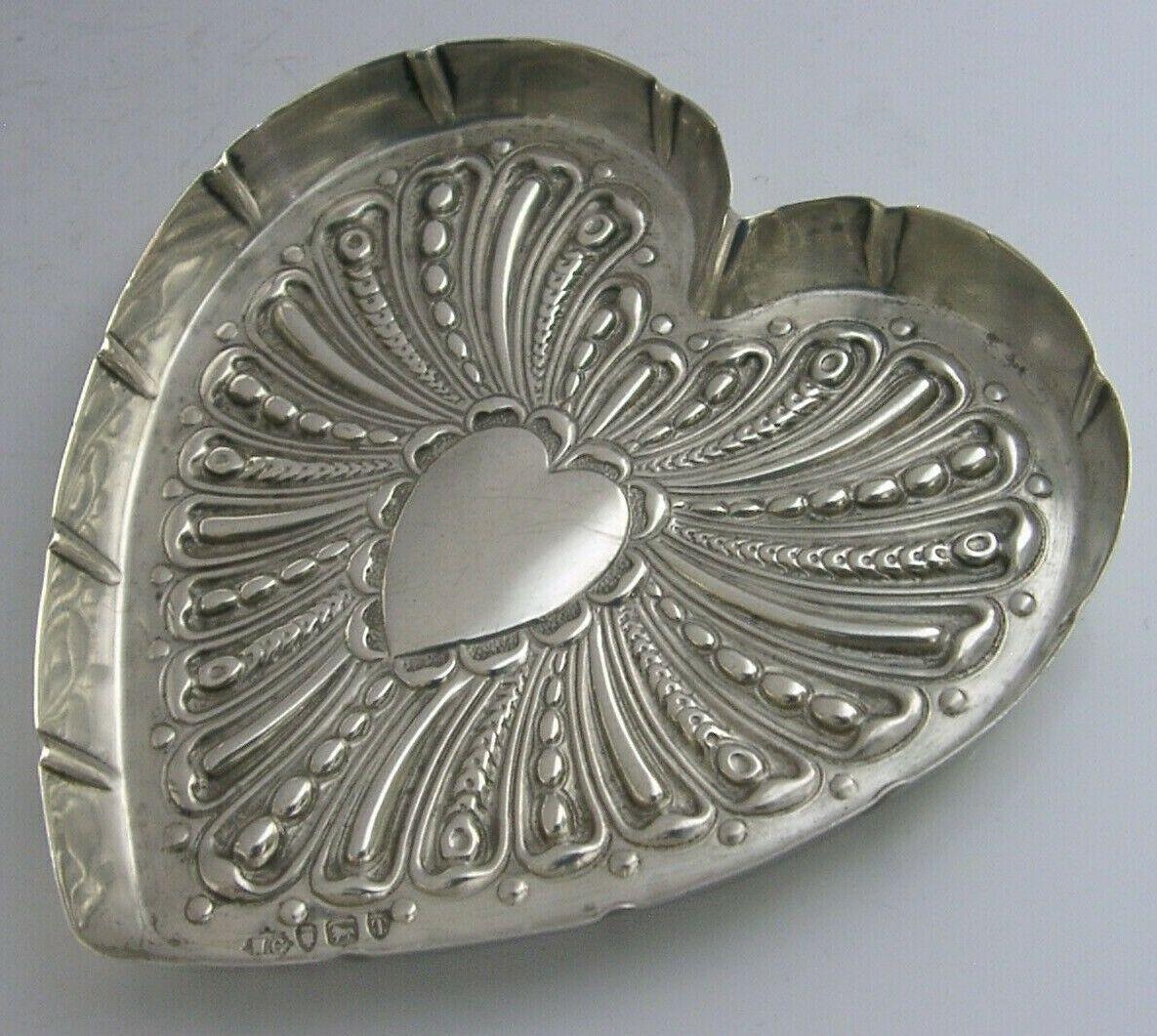 Beautiful English Sterling Silver Love Heart Pin Tray Dish - 1894 Antique