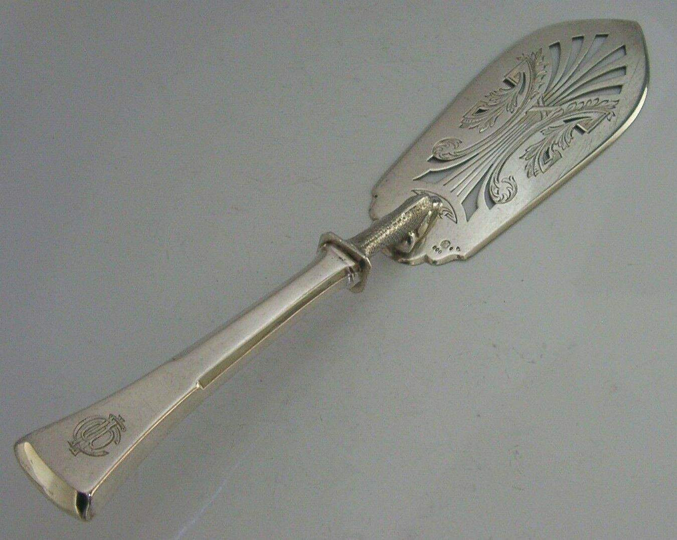 Beautiful European Solid Silver Dolphin Fish Server Slice 1910 Antique