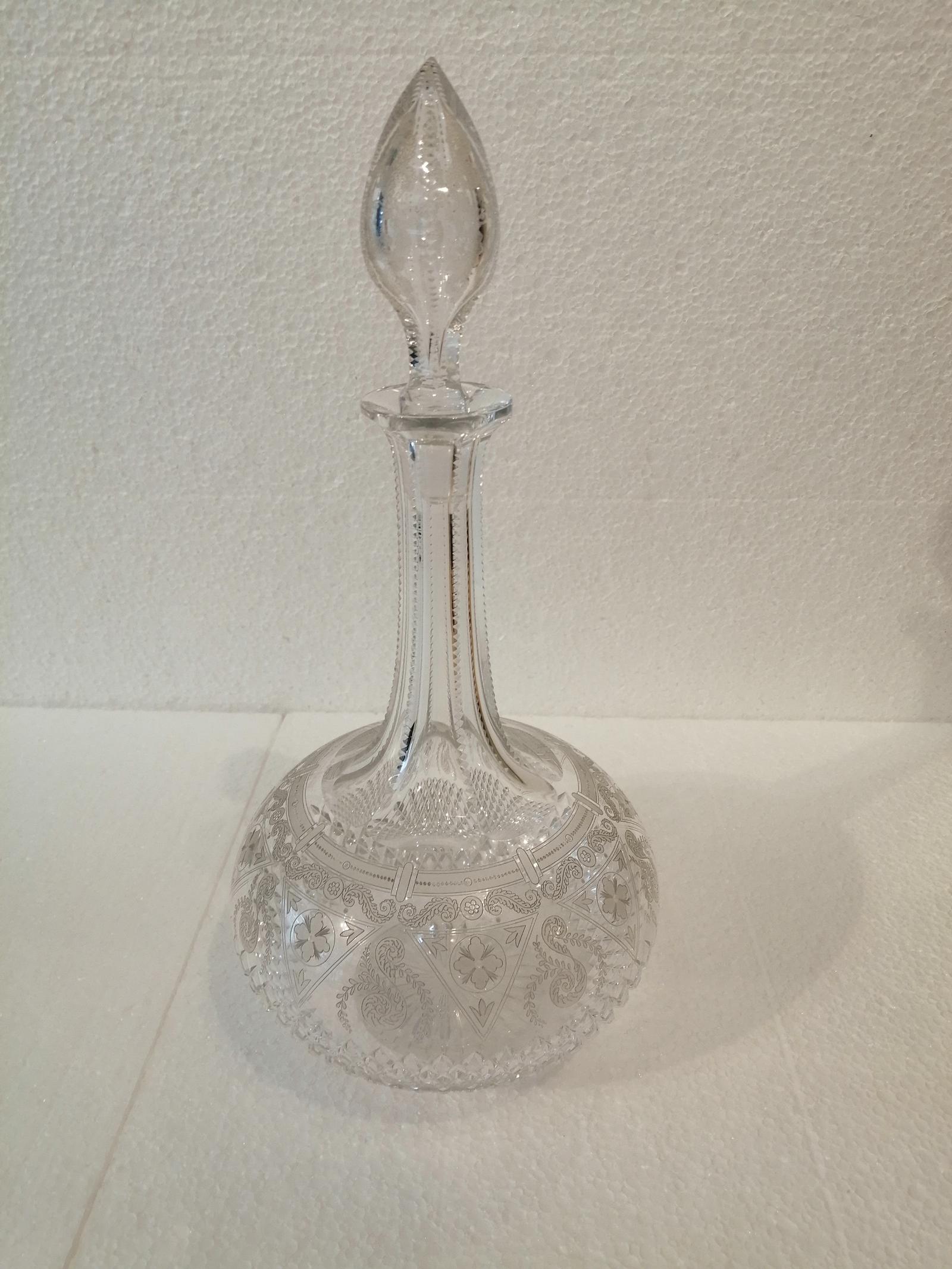 Beautiful F & C Osler Engraved & Ribbed Cut Glass Decanter