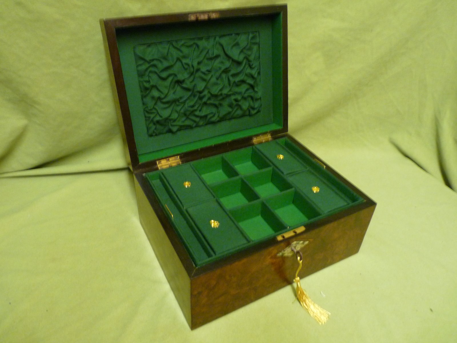 Beautiful Figured Walnut Jewellery Box + Tray c.1870