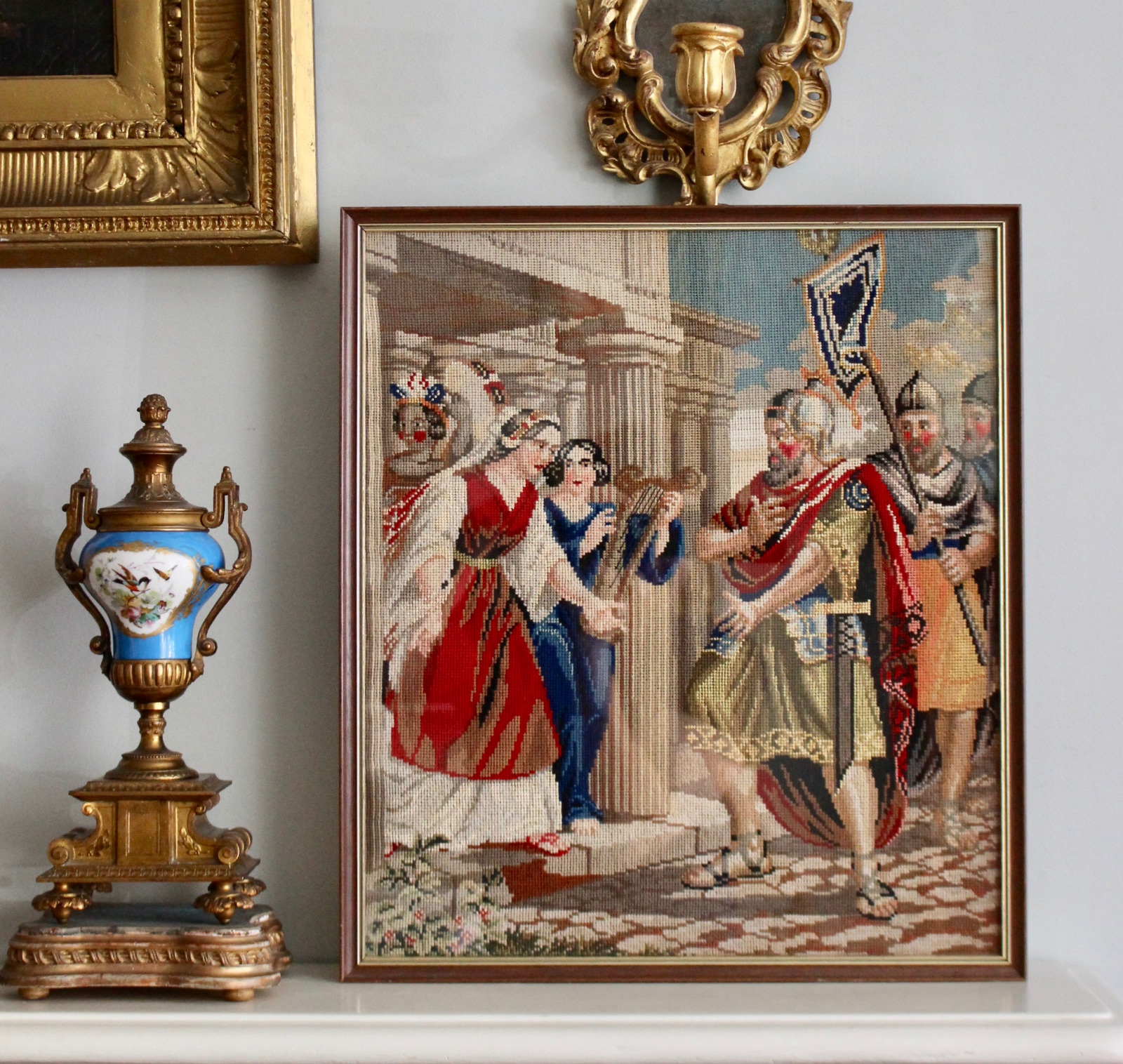Beautiful Framed Tapestry Wool Work Panel, Roman Centurion & Noble Women