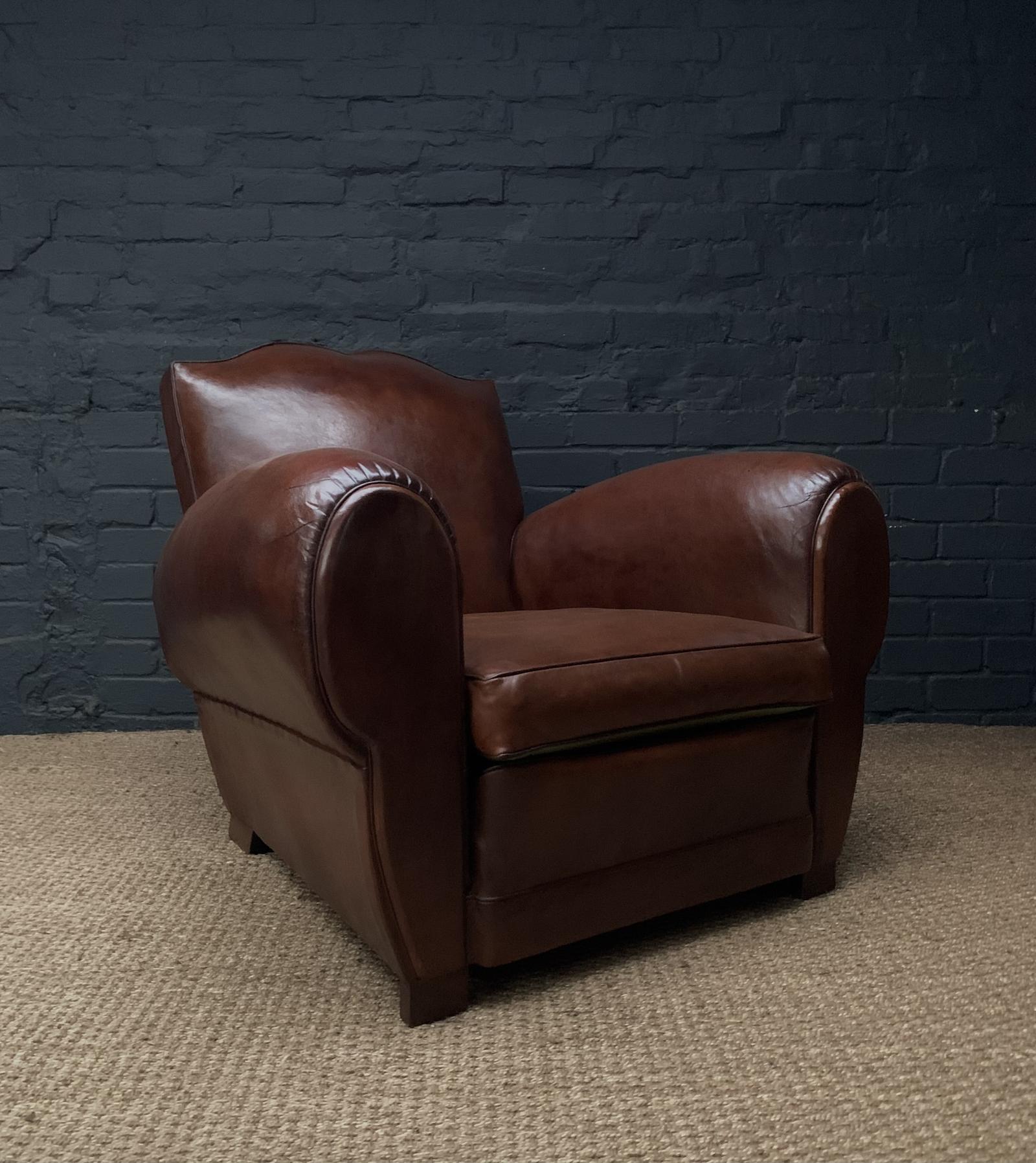 Beautiful French, Leather Club Chair, Havana Moustache Model with Cuban Cigar Arms c.1930