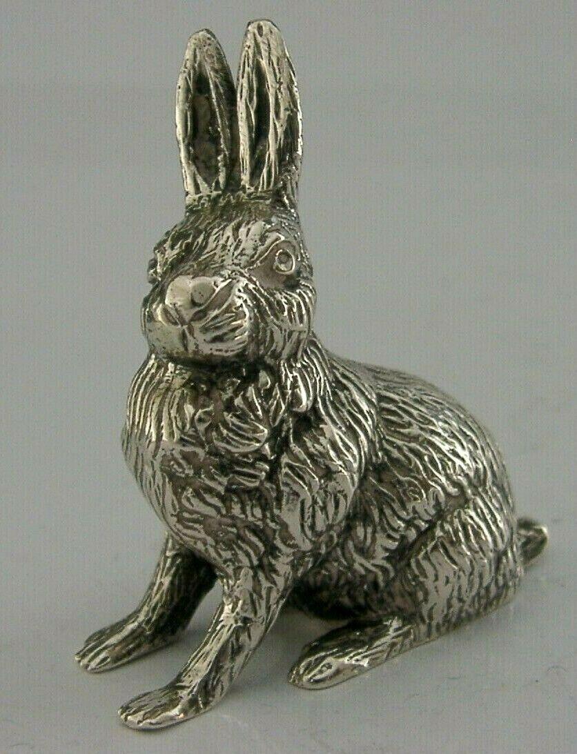 Beautiful Good Sized Solid Silver Rabbit Hare Animal Figure c.1960 Spanish