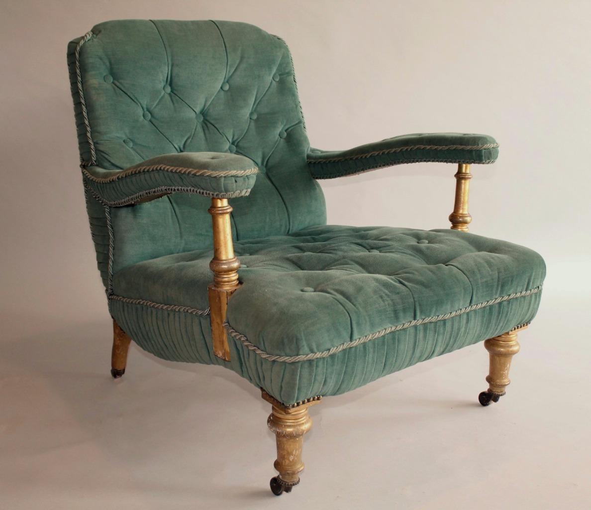 Beautiful Howard Style Deep Buttoned Armchair Giltwood C.1880 (1 of 1)