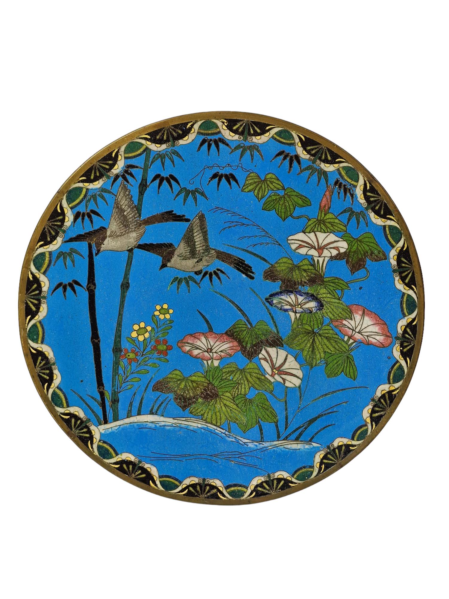 Beautiful Japanese Cloisonne Enamel Plate / Charger on Bronze - Meiji Period c.1890