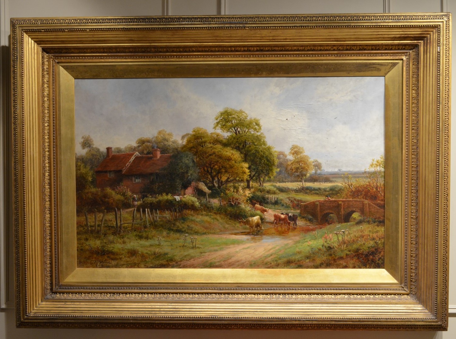 Beautiful Large 19th Century Oil On Canvas of Cattle Near a River by Robert J Hammond