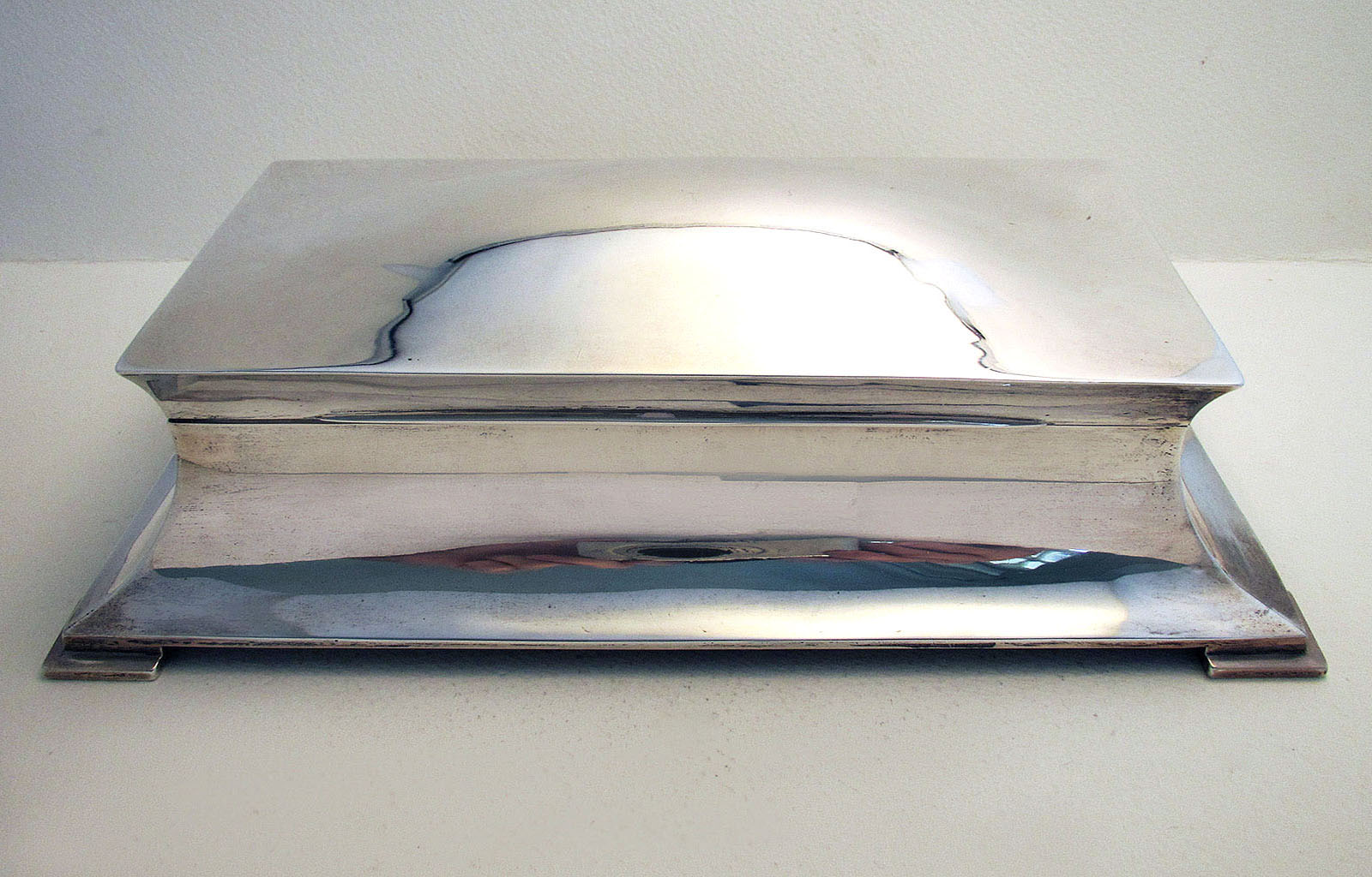 Beautiful Large 9' Wide Antique Solid Sterling Silver Cigar / Humidor Cigarette Trinket Jewelry Casket Case Box 1908