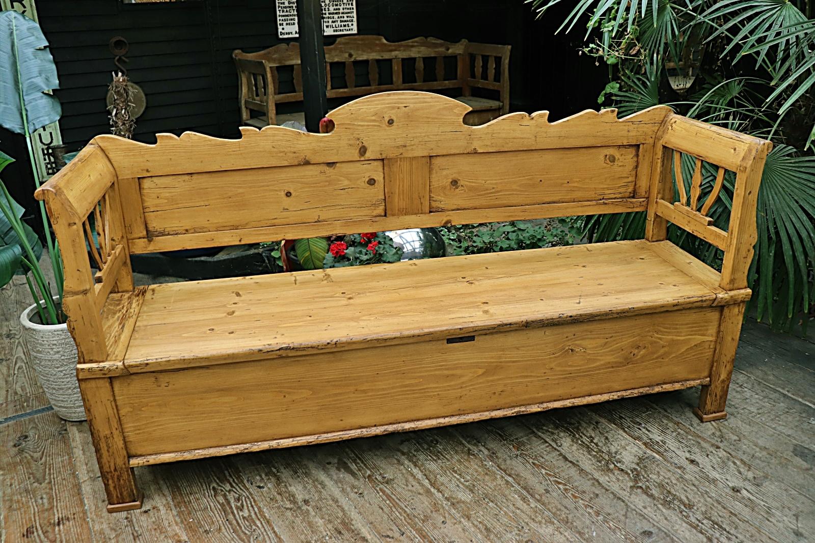 Beautiful & Large Old Waxed Pine Hungarian Storage/ Boot Room Bench