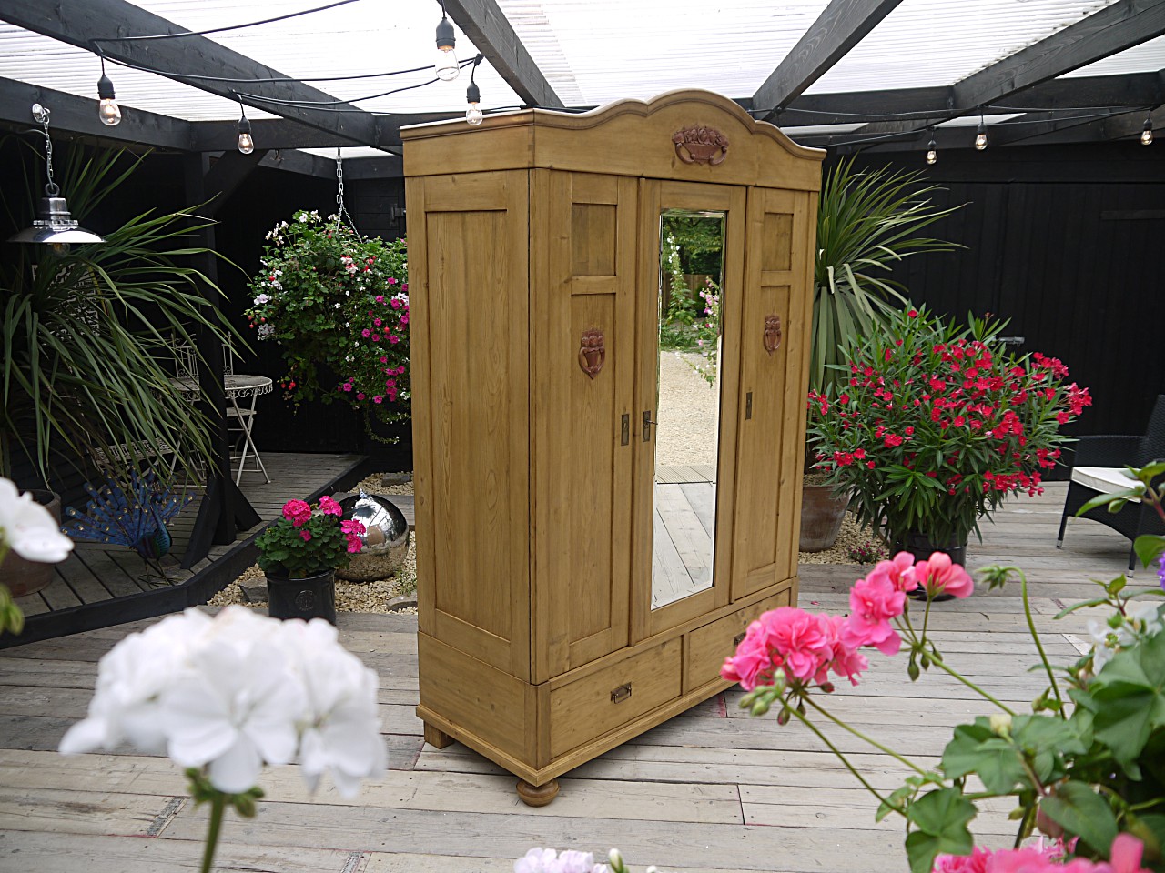 Beautiful! Large & Quality Old Antique Pine Triple Knock Down Sectional Wardrobe