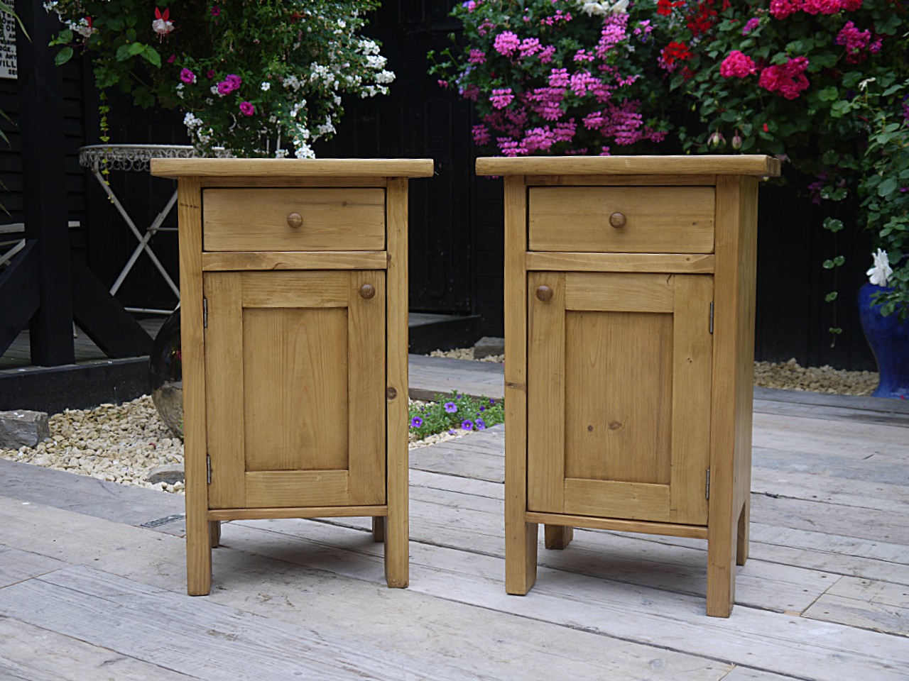 Beautiful! Matching Pair Old Antique Pine Bedside Cabinets / Lamp Tables