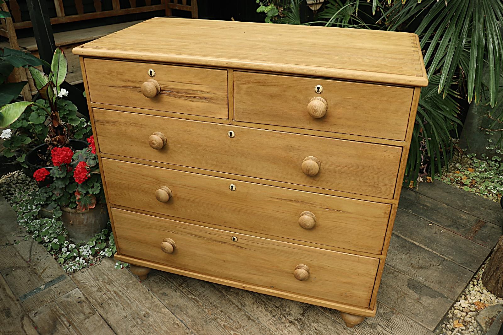 Beautiful Mid Victorian Old Pine Chest of 5 Drawers