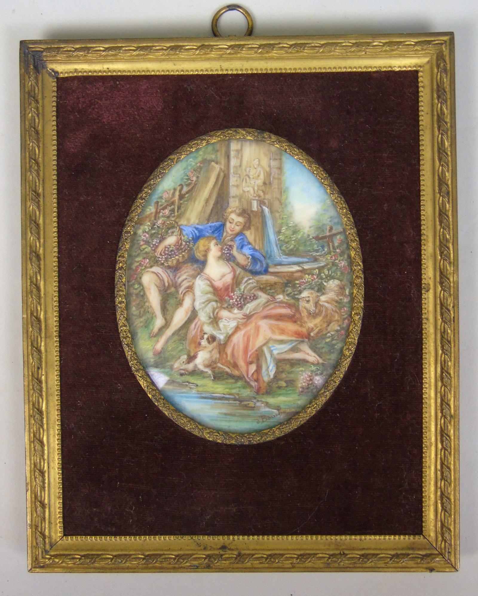 Beautiful Miniature Painting after Boucher Courting Couple