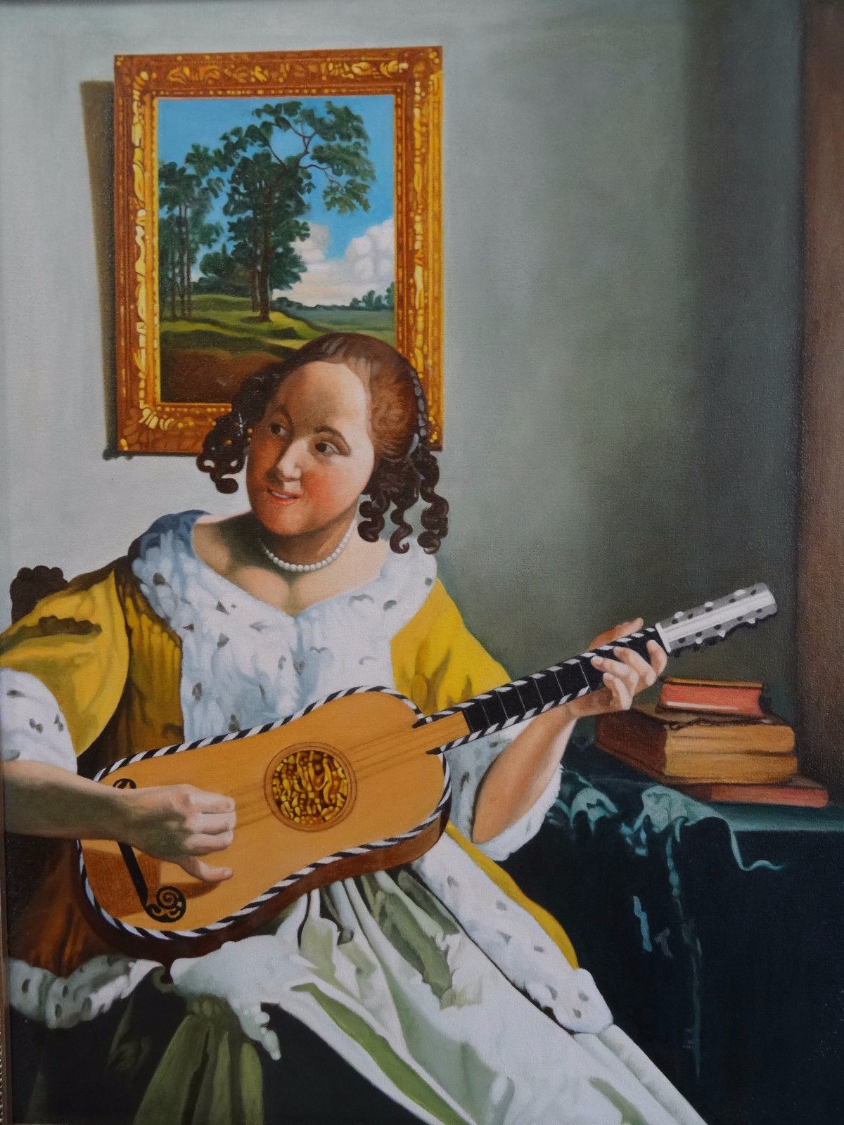 Beautiful Oil Portrait Painting of a Beauty Playing a Musical Instrument