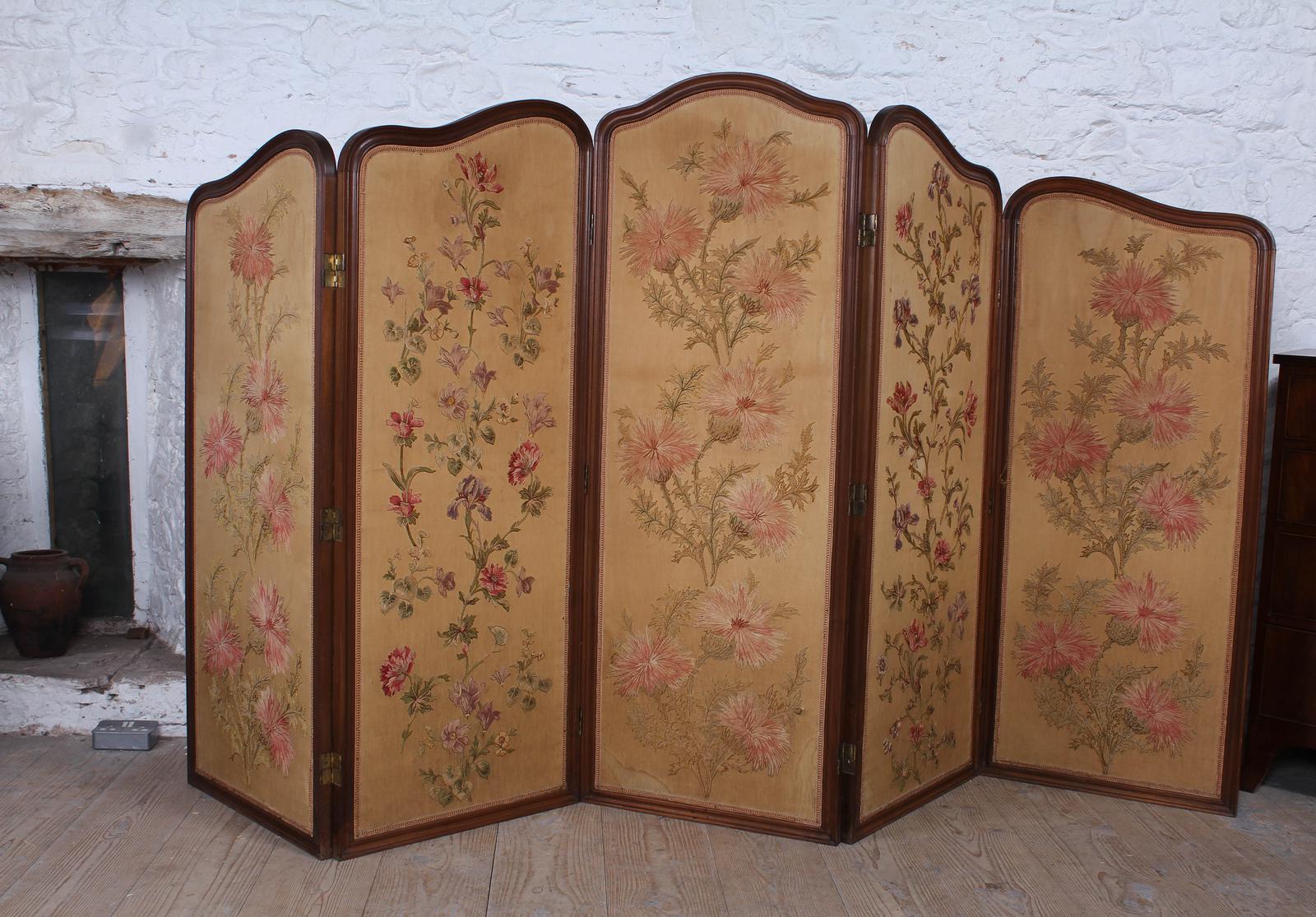 Beautiful Old Art Nouveau 5 Fold Screen