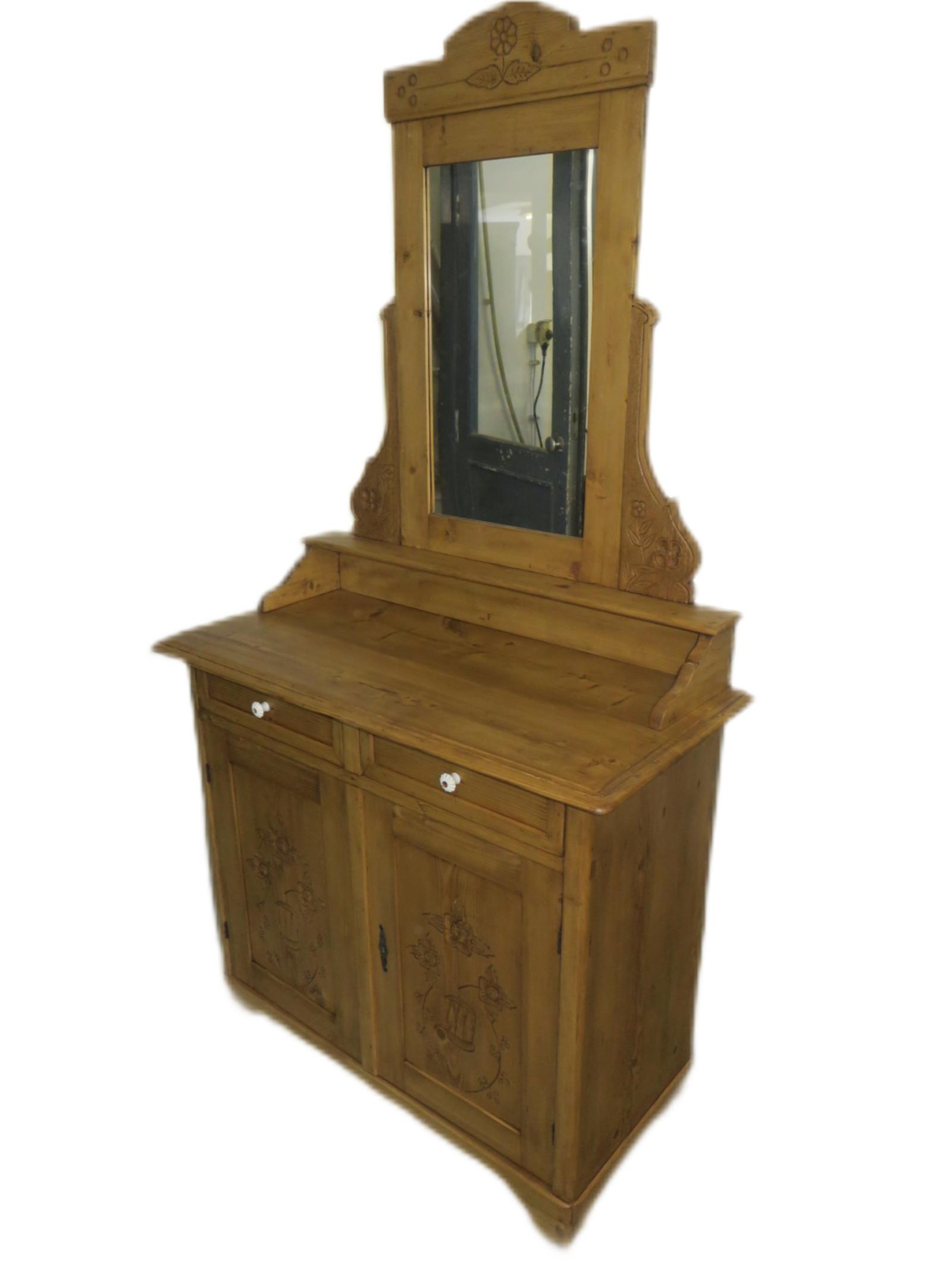 Beautiful Old Carved Pine Arts & Crafts Dressing Table