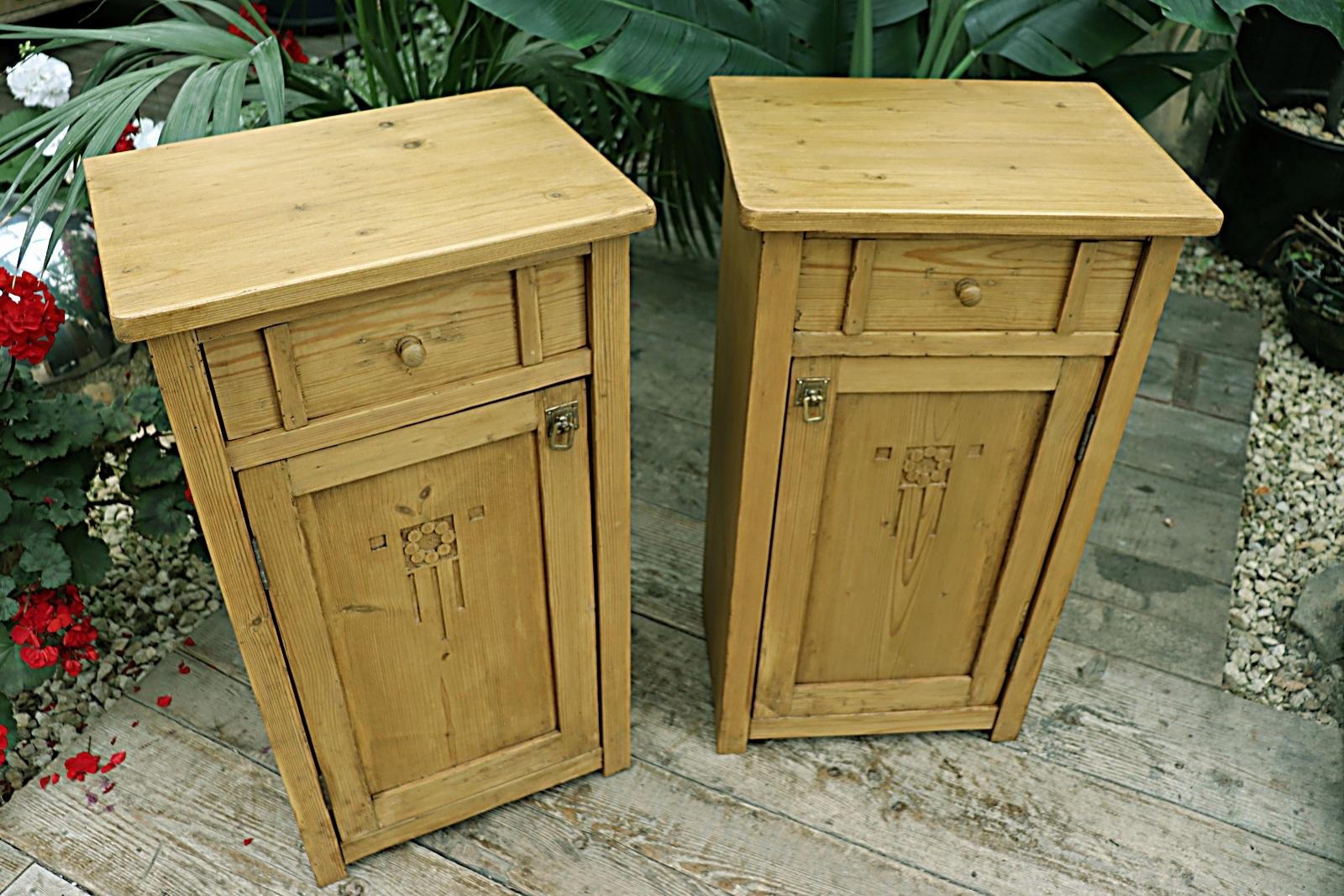 Beautiful Old Early 20th Century Arts & Crafts Pine Bedside Cabinets / Cupboards