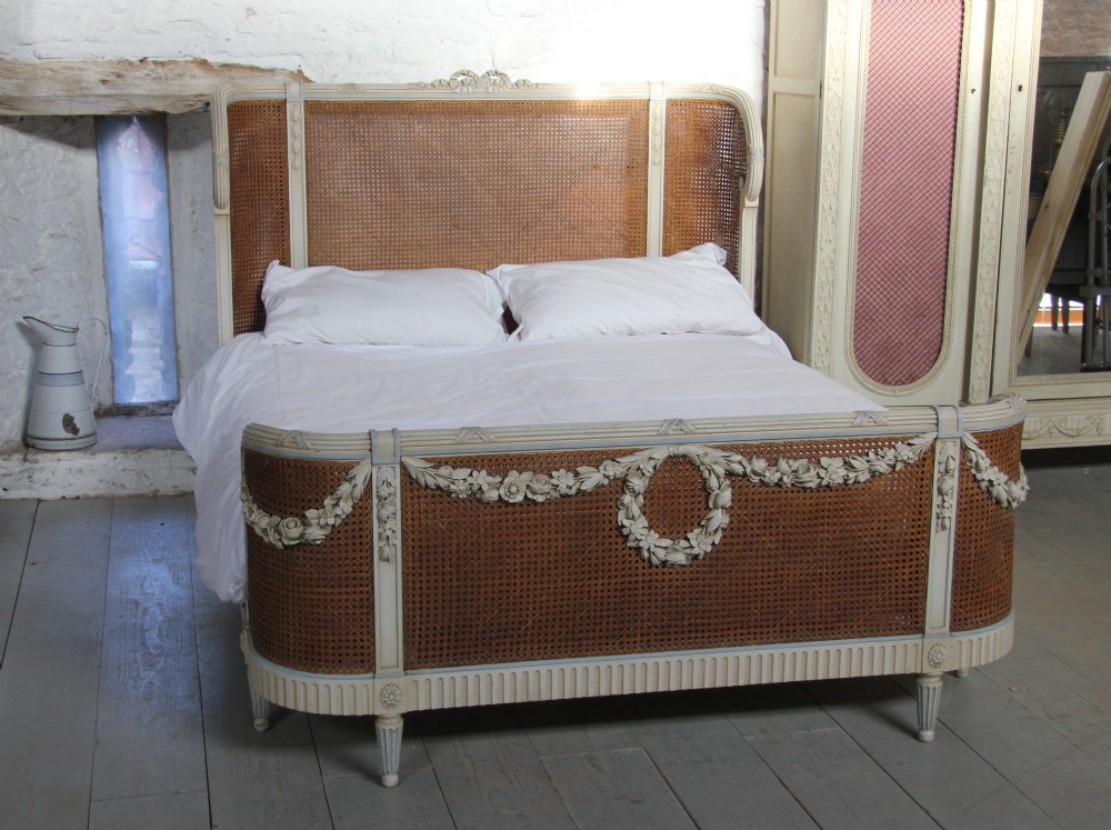 Beautiful & Original French Painted & Caned King Size Bed c.1900 (1 of 12)