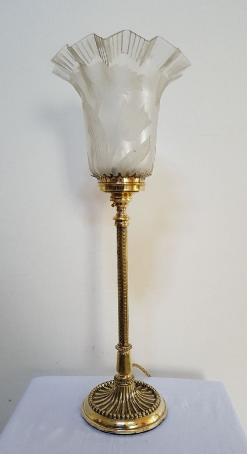 Beautiful Ornate Brass Table Lamp; Rewired & Pat Tested c.1890