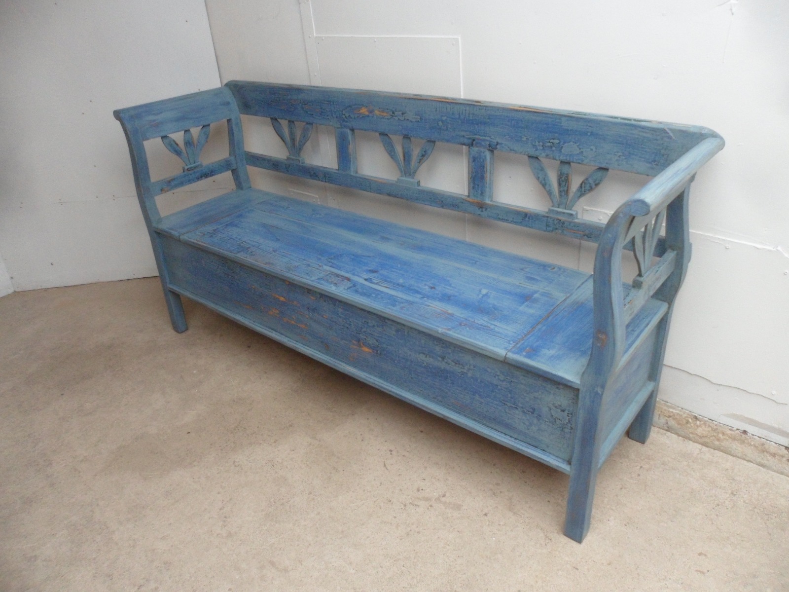 Beautiful Painted Blue Antique Pine Hall / Kitchen Box / Settle / Bench
