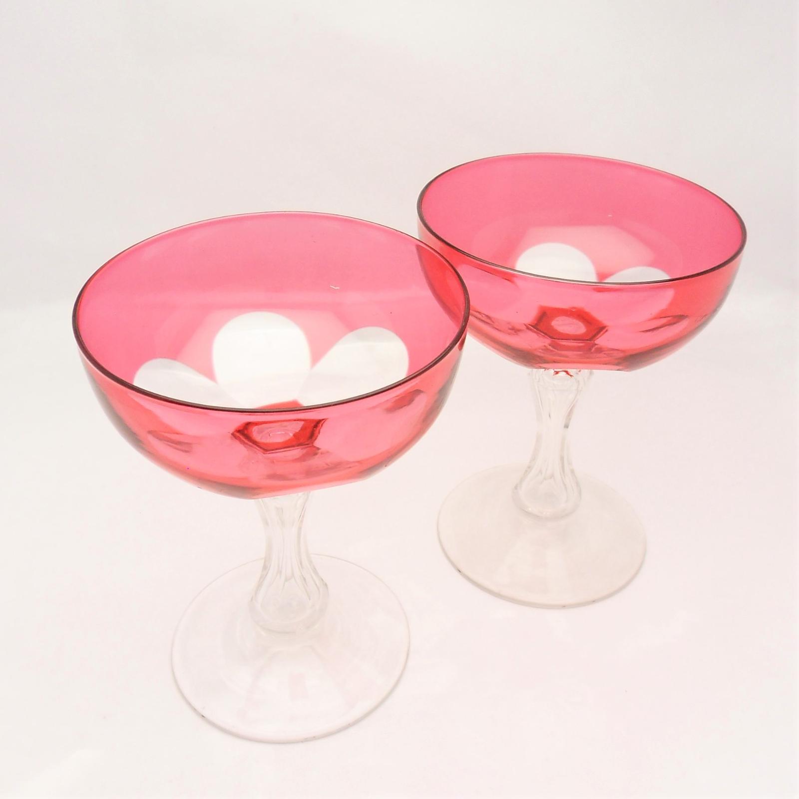 Beautiful Pair of Antique Cranberry Glass Champagne Saucers