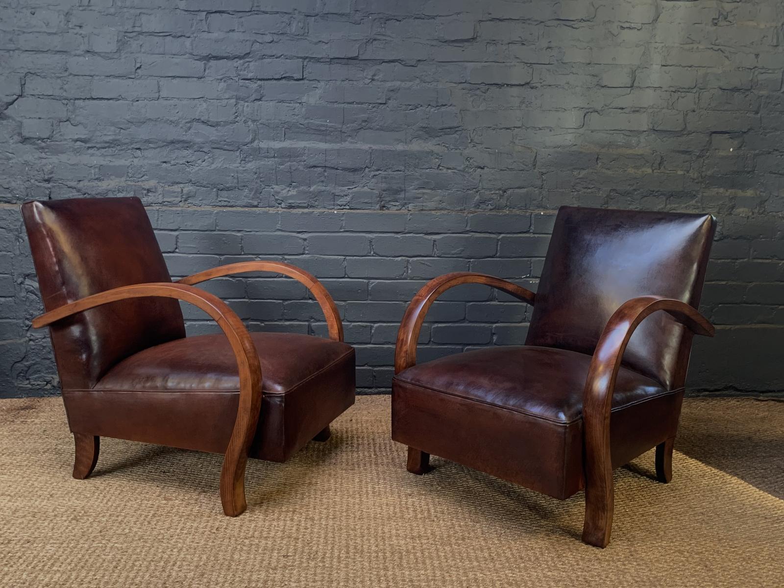 Beautiful Pair of French Bentwood, Leather Lounge Chairs c.1950