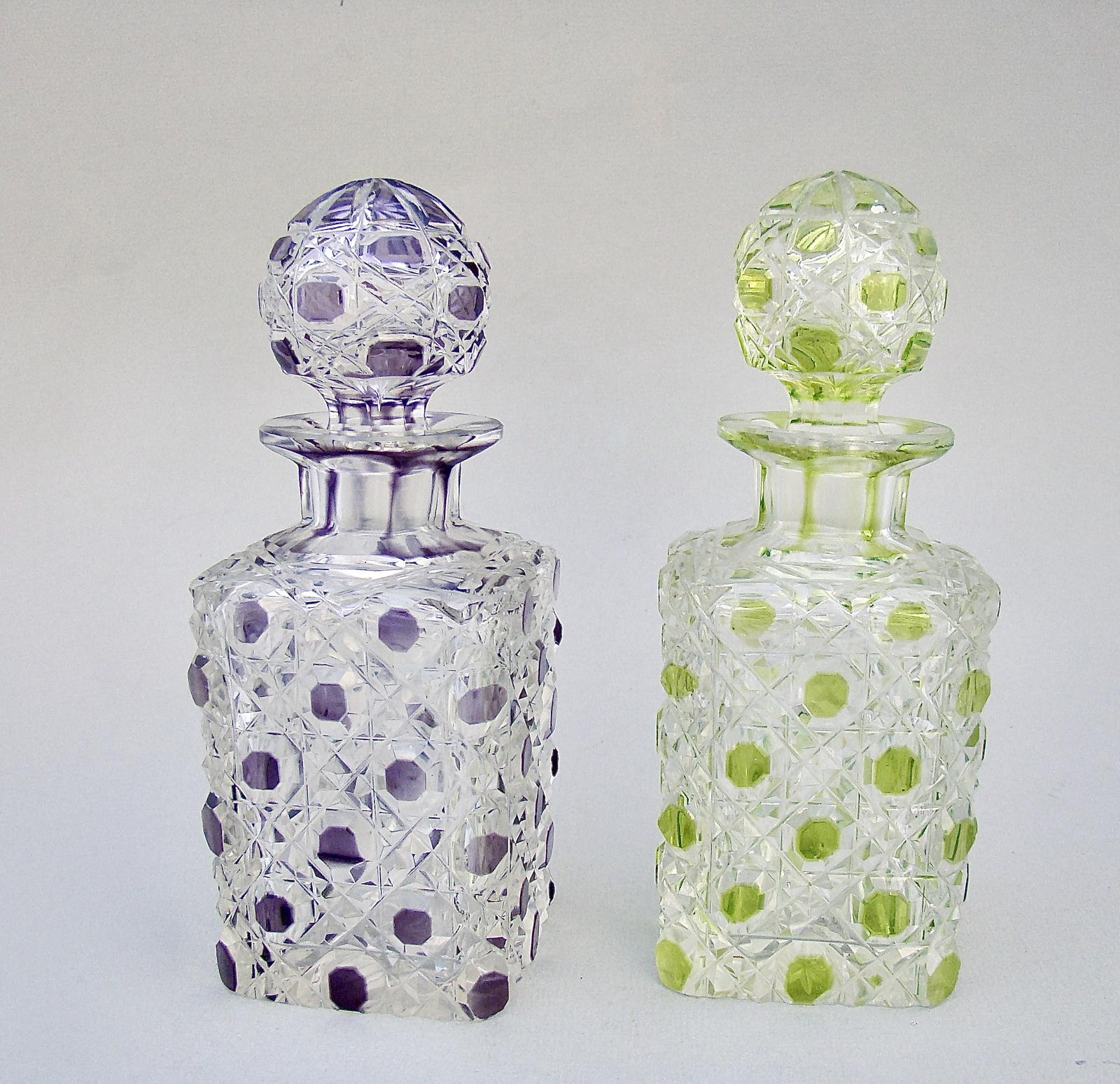Beautiful Pair of French Lime & Amethyst Glass Hobnail Cut Scent Bottles c.1900