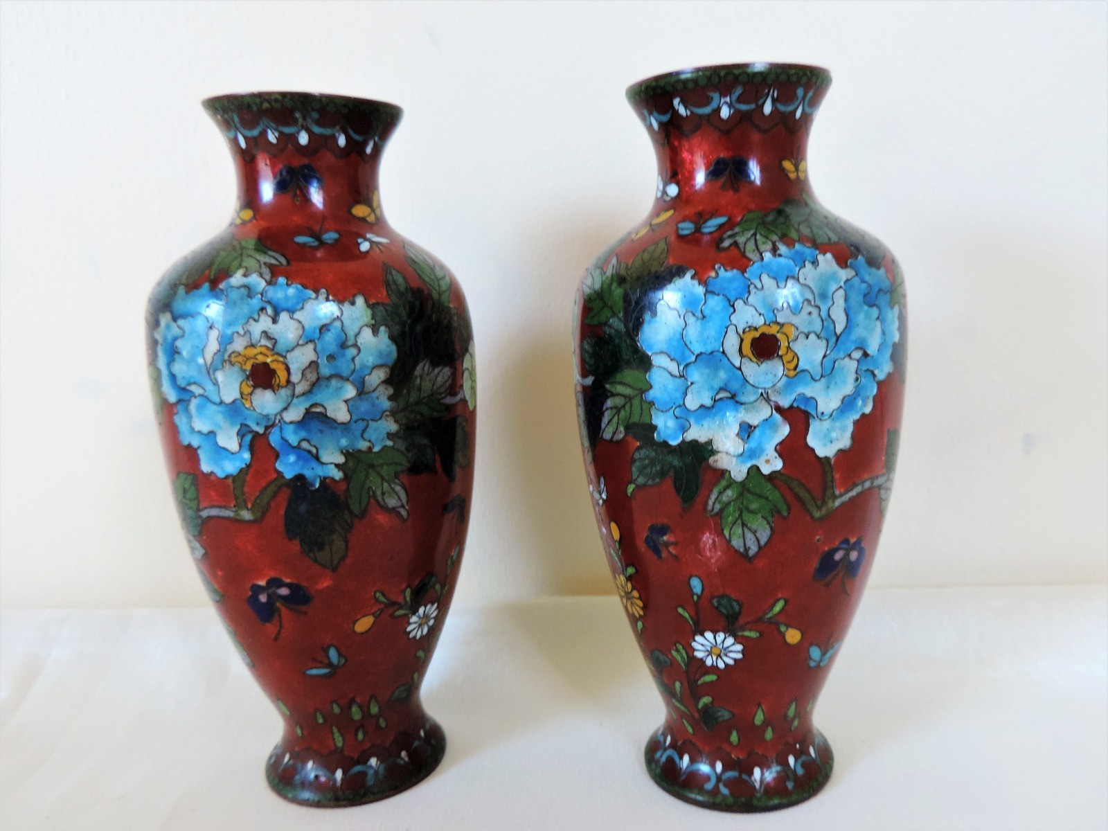 Beautiful Pair of Japanese Cloisonne Vases Meiji Period 14cm Tall