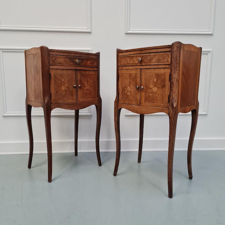 Beautiful Pair of Marquetry Bedside Cabinets c.1920
