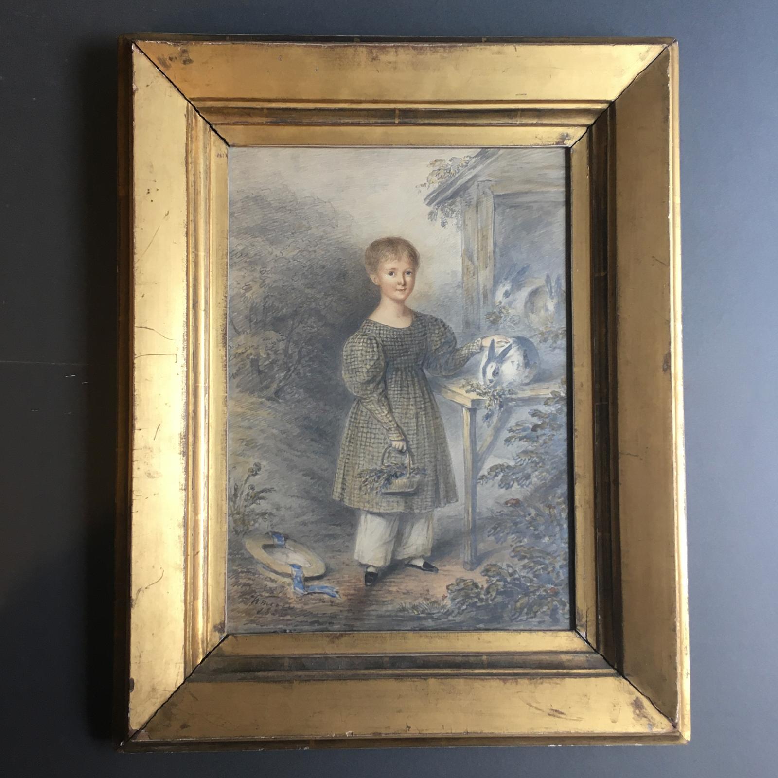Beautiful Portrait of a Child with Their Rabbits by William Moore Senior. Signed and Dated 1836