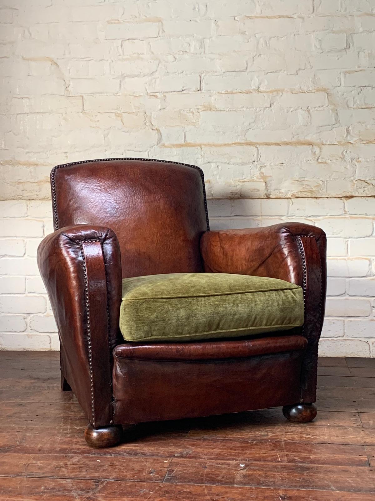 Beautiful & Rare French Leather Club Chair - Normandy Model c.1920