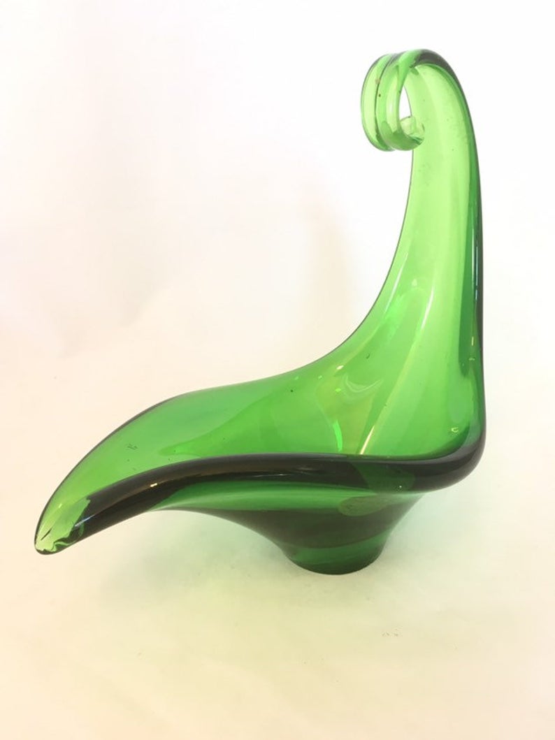 Beautiful Retro Murano Aladdins Lamp Dish in Emerald Green, Freeform Glass, Living Room Decor, Retro Glass Gift for Her