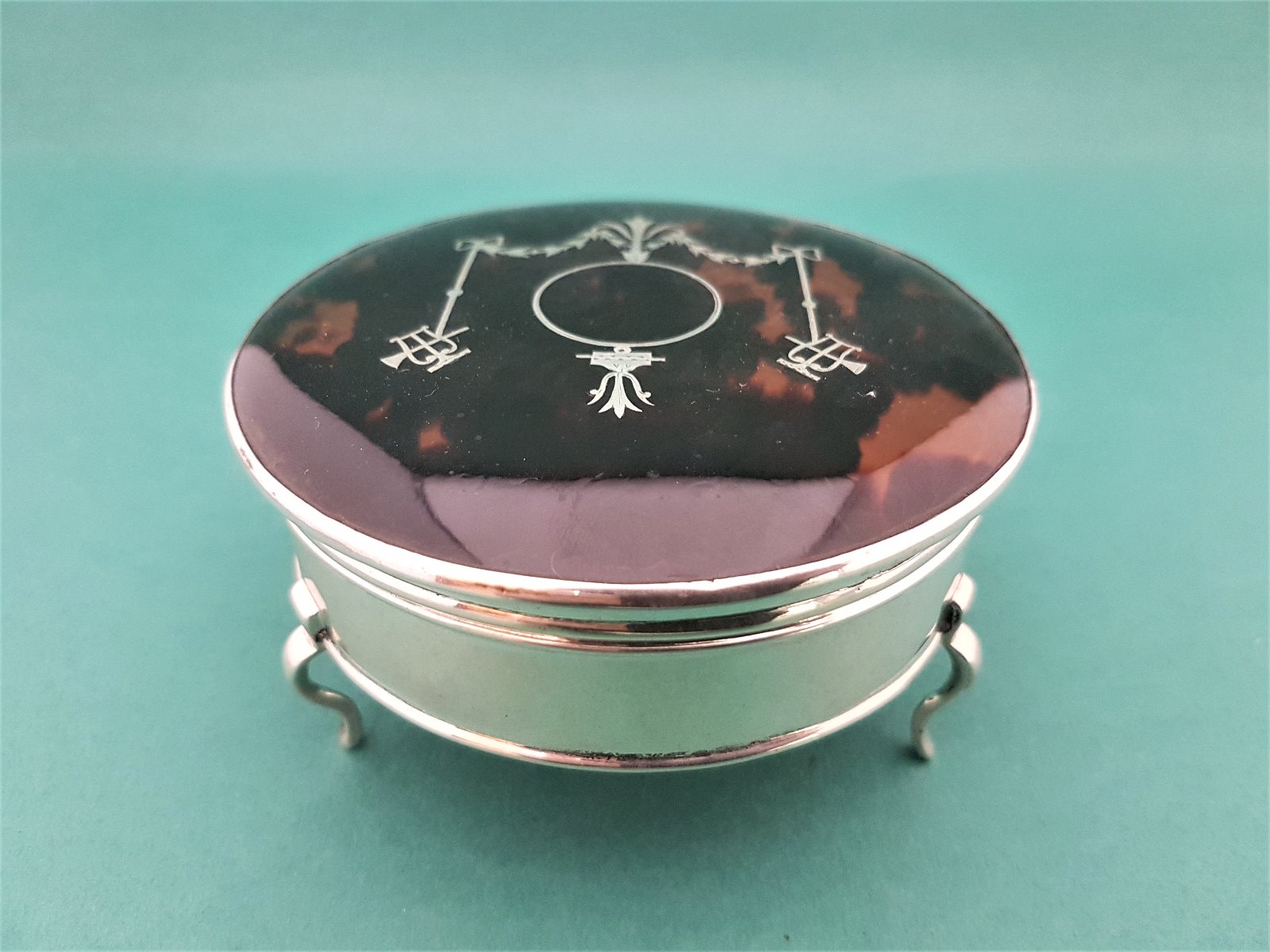 Beautiful Round Antique Silver & Tortoiseshell Trinket Box
