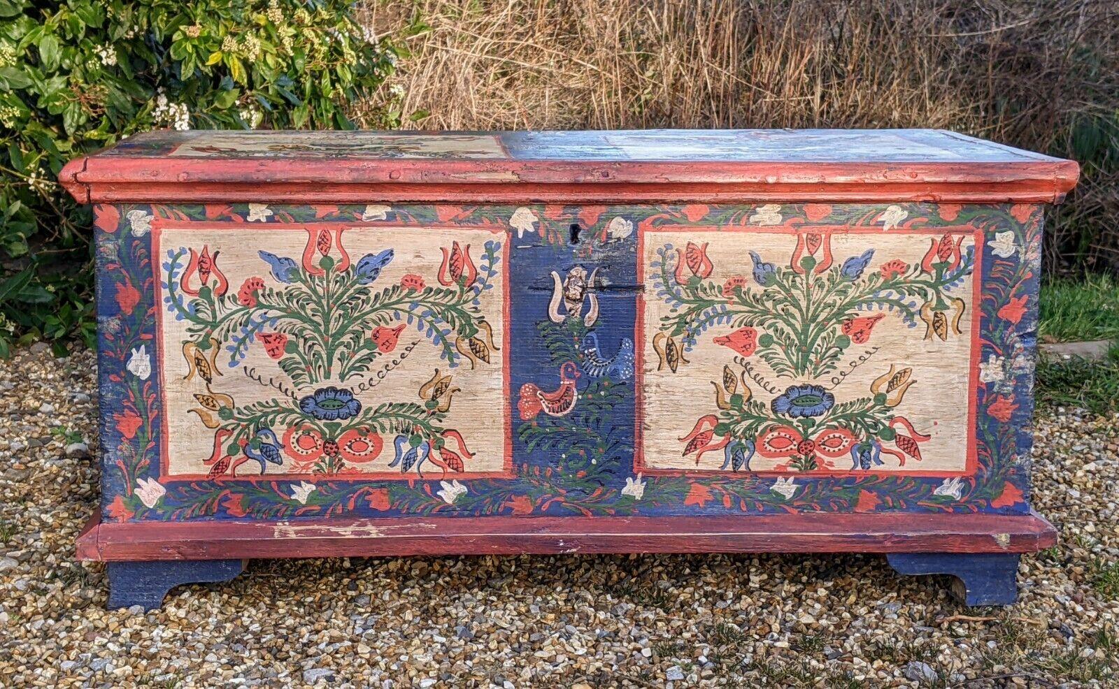 Beautiful Scandinavian Hand Painted Dowry Chest