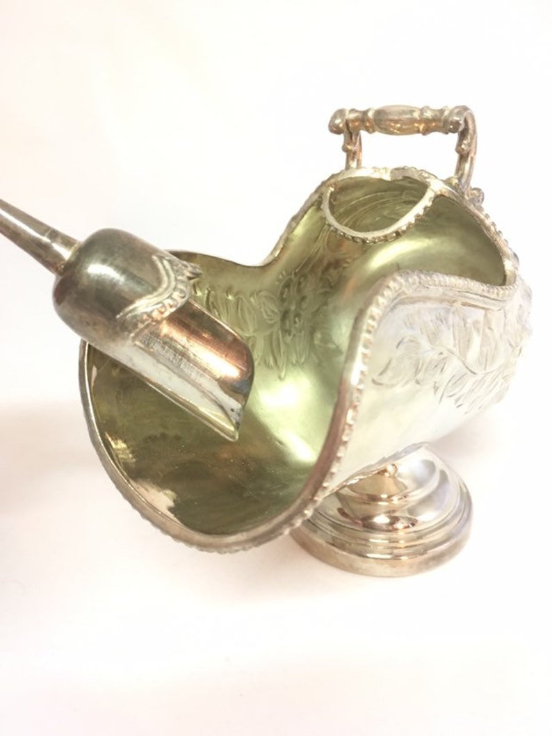 Beautiful Silver Plated Novelty Sugar Server in the Shape of a Coal Scuttle