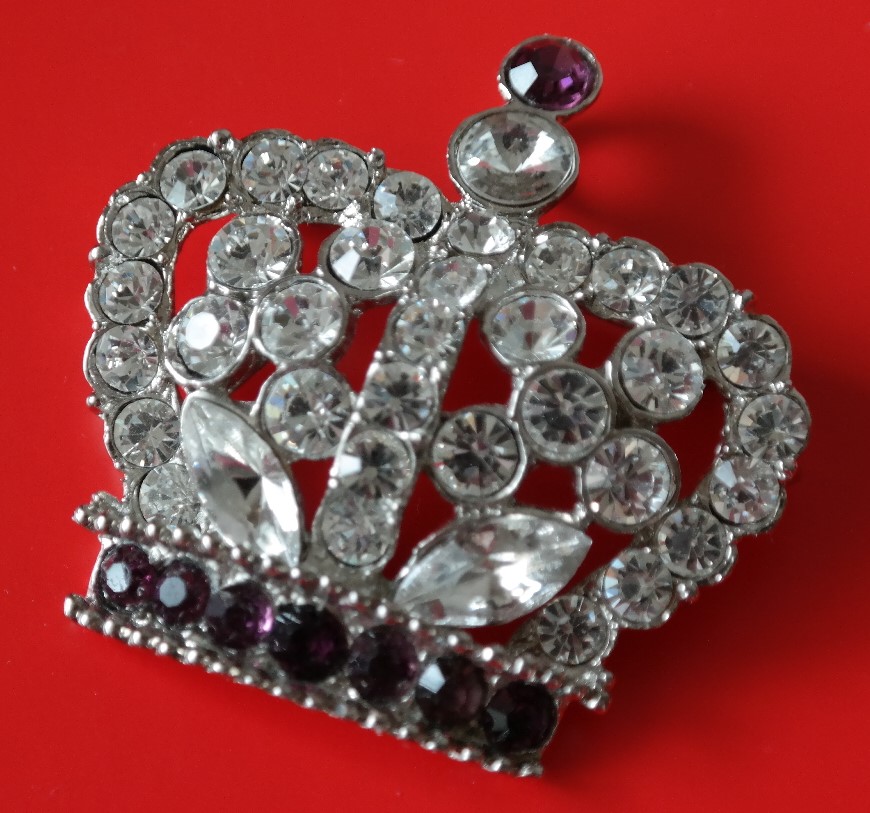 Beautiful Silvertone Sparkling Rhinestone & Amethyst Crown Brooch Boxed (1 of 1)