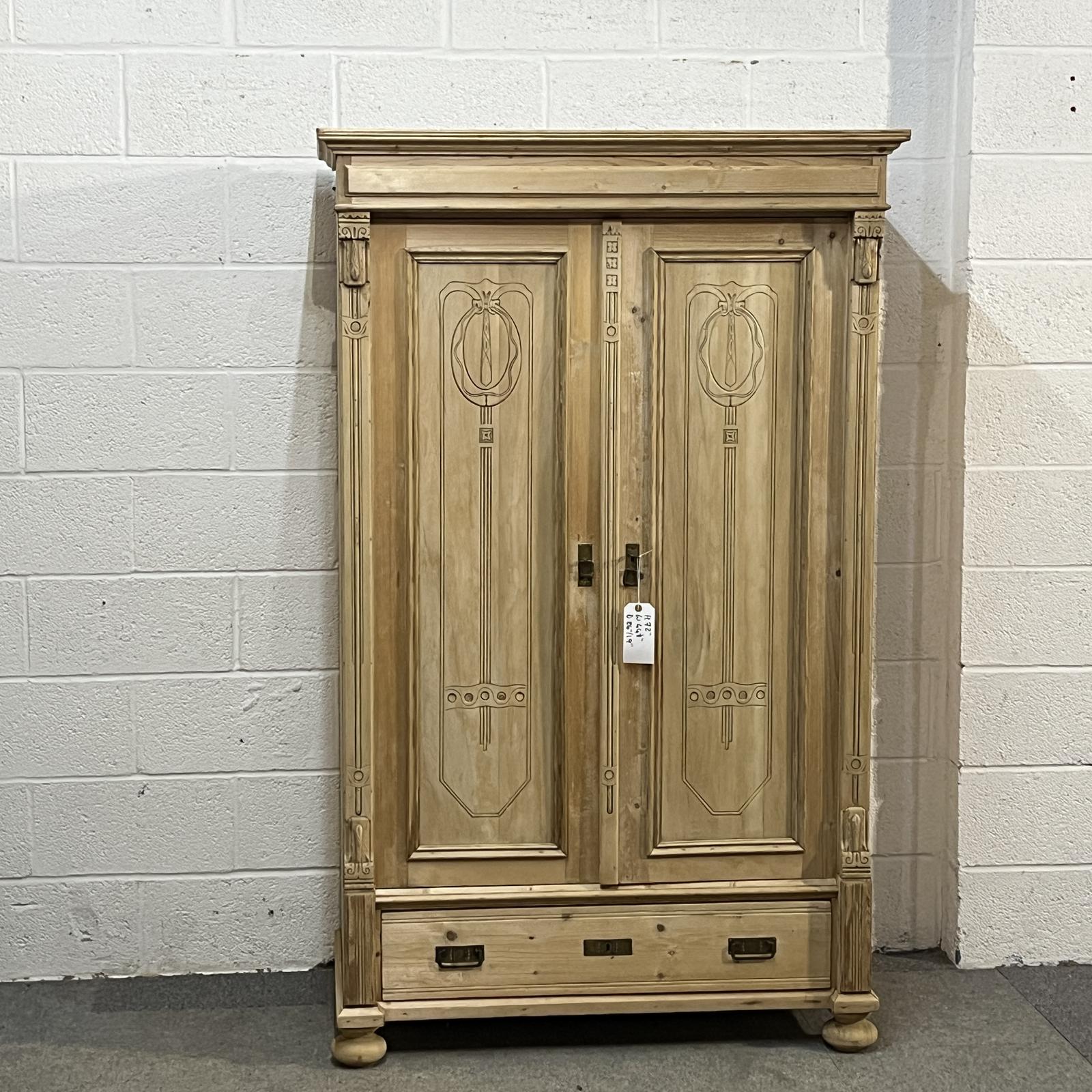 Small Antique Pine Wardrobe with Bottom Drawer