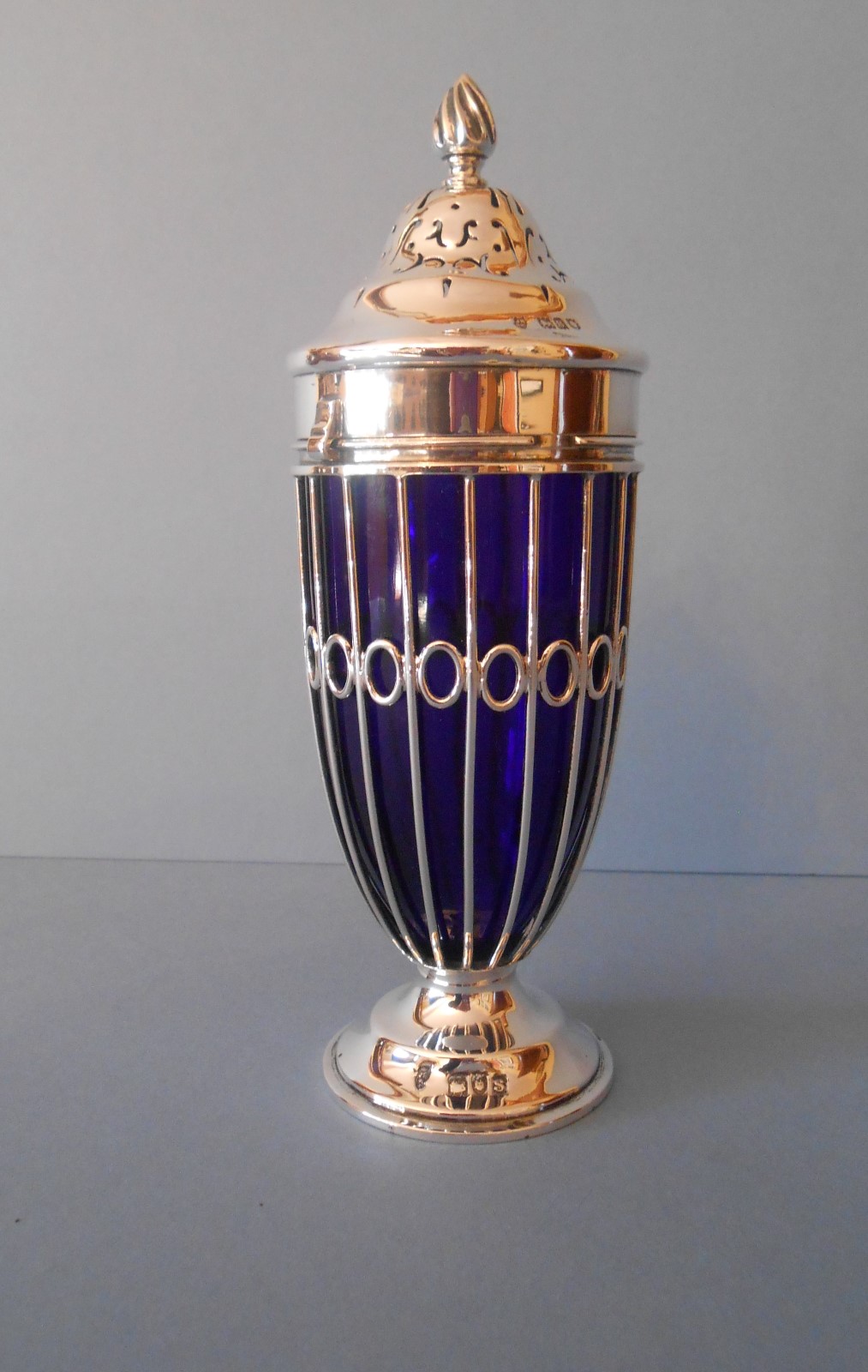Beautiful Solid Silver and Glass Sugar Dredger 1913