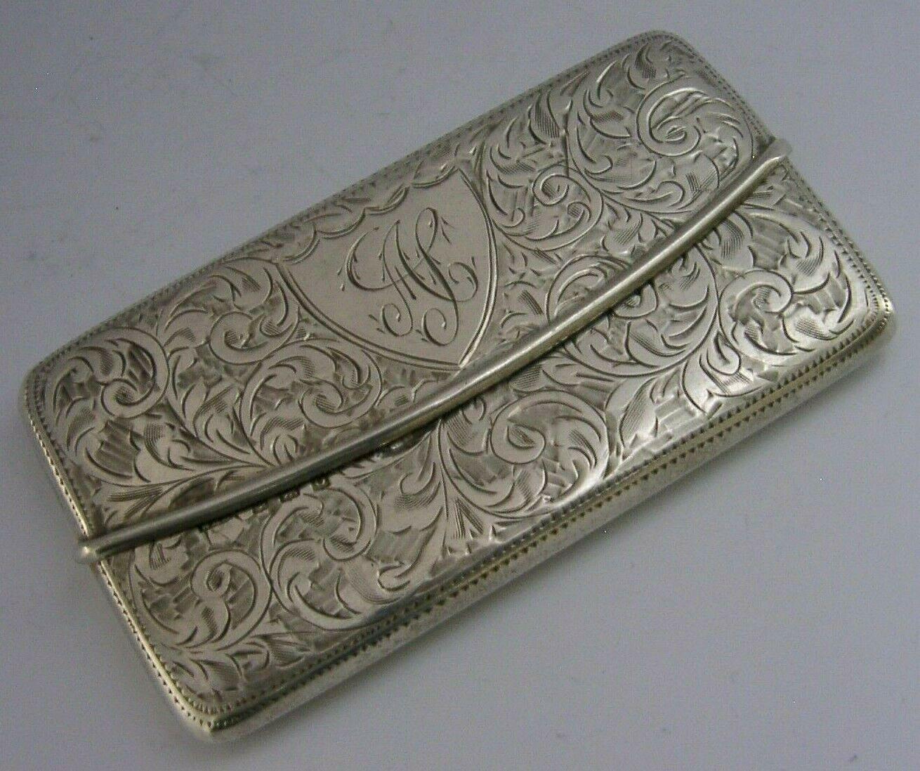 Beautiful Solid Sterling Silver Card Case 1913 Antique Sprung Hinge