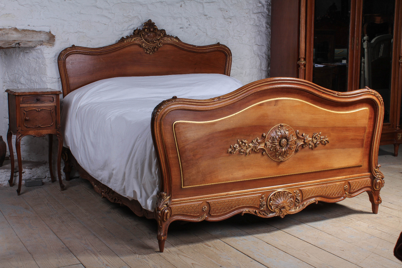 Beautiful Solid Walnut Carved & Gilded Louis XV Style King Size Bed (1 of 13)