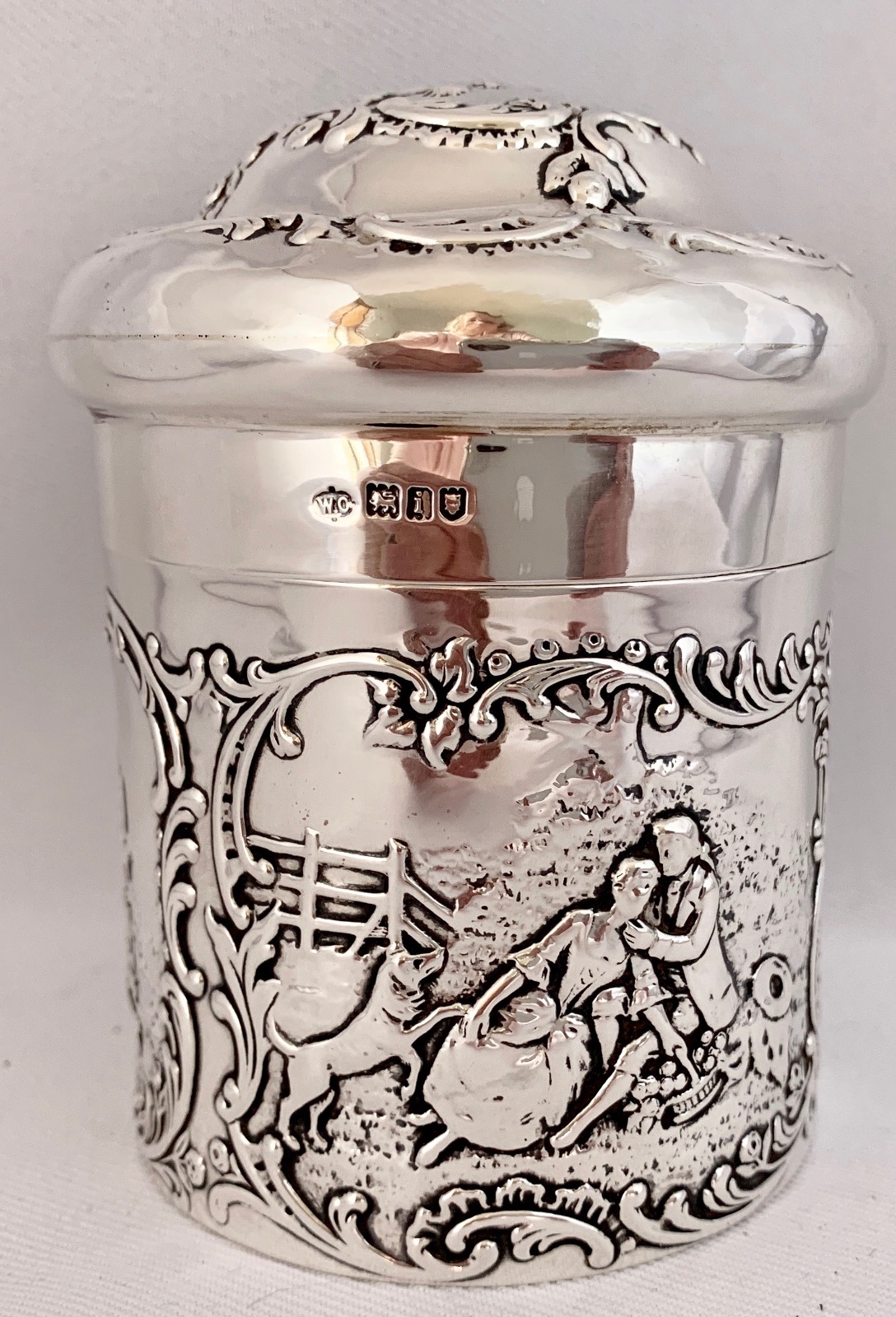 Beautiful Sterling Silver Repousse Decorated Canister